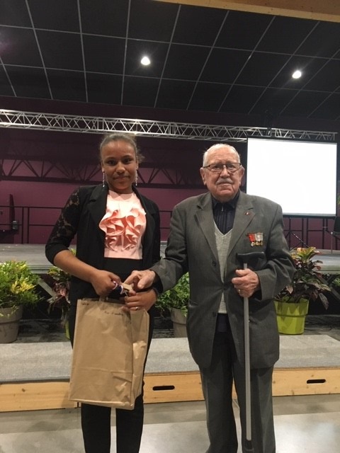 Pierre Laurier, ancien résistant, 96 ans remettant les prix du Concours National de la Résistance et de la Déportation à Angoulême, le 17 mai 2019.