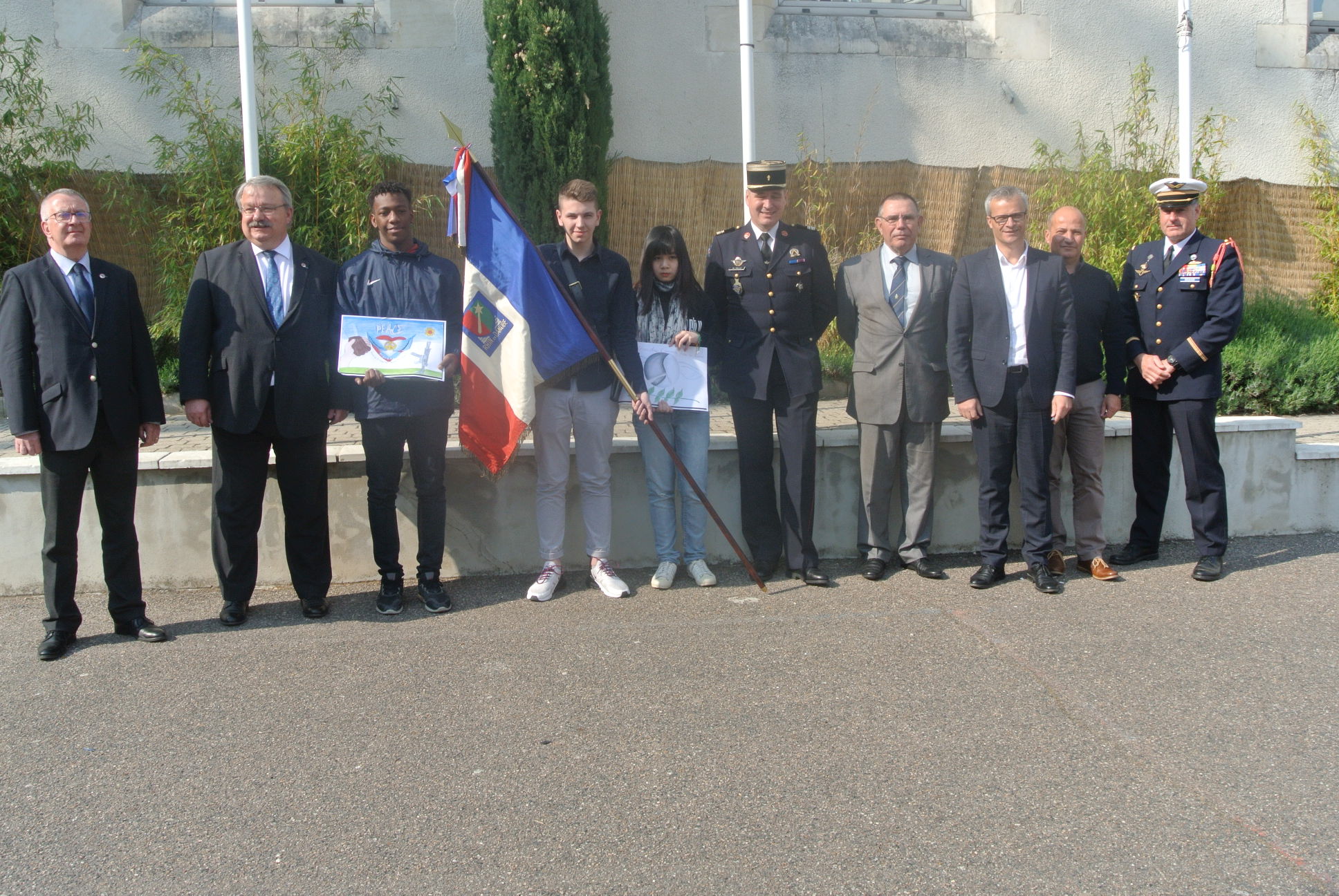 Remise du drapeau Rhin et Danube au lycée Saint Paul Bourdon Blanc d’Orléans (Loiret) par Jean-Christophe Denis, délégué général du Souvenir Français, le 30 avril 2019.