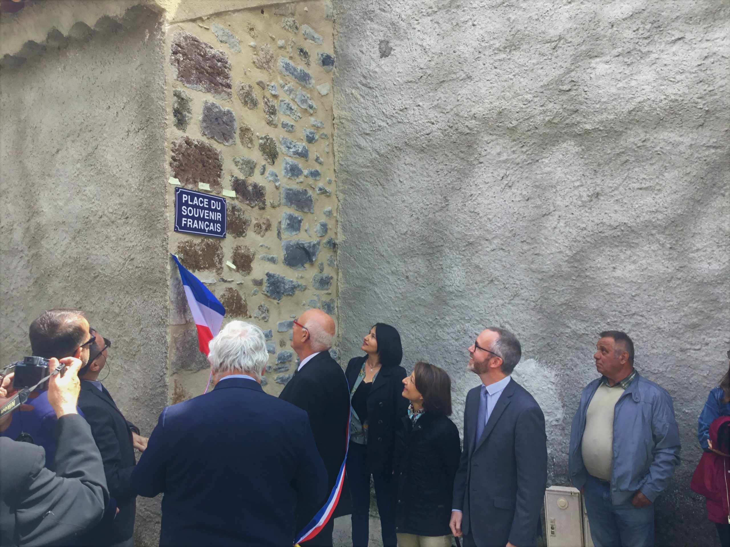 Inauguration du nouveau monument aux Morts et baptême de la place du Souvenir Français à Freyssenet (Ardèche), le 4 mai 2019.