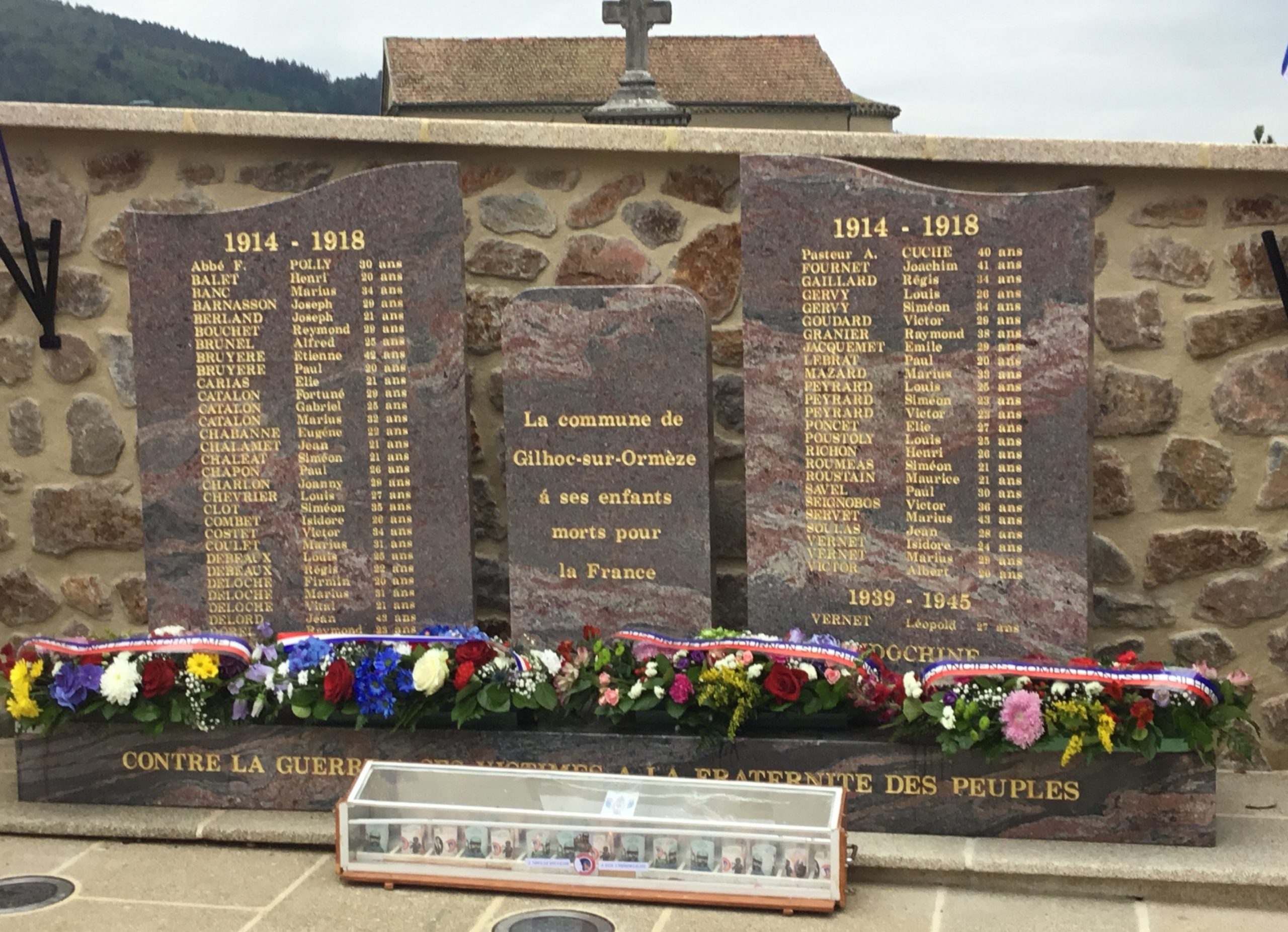 Inauguration du monument aux Morts rénové de Gilhoc- sur-Ormèze (Ardèche) et de l’espace du Souvenir Français, le 17 mai 2019.
