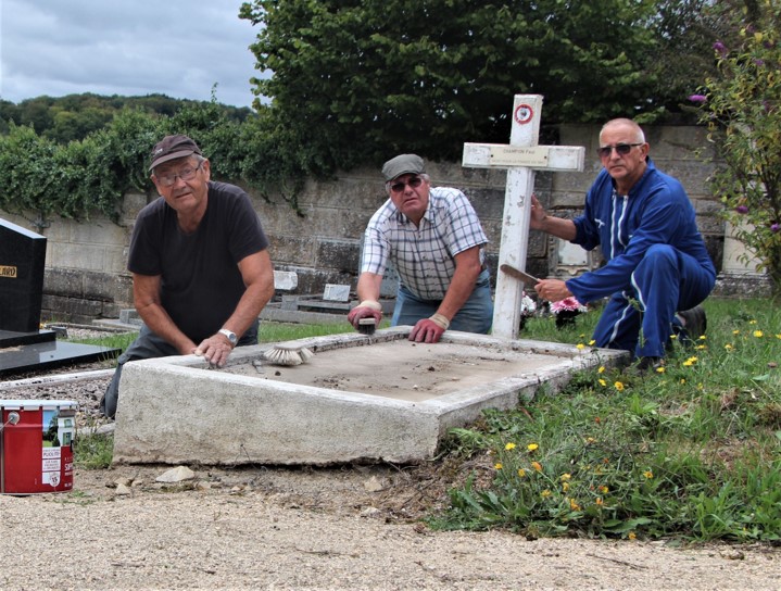 Rénovation de la sépulture de Maurice Colin avant la cérémonie d’hommage le 7 octobre 2018 par la délégation générale du Souvenir Français pour le Doubs.