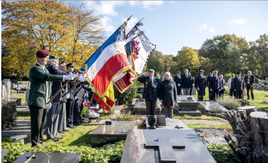 Hommage à Alfons Van Hecke, jeune anversois devenu général de brigade à la Légion Étrangère française, dans le cimetière d’Edegem, Belgique, le 7 octobre 2018.