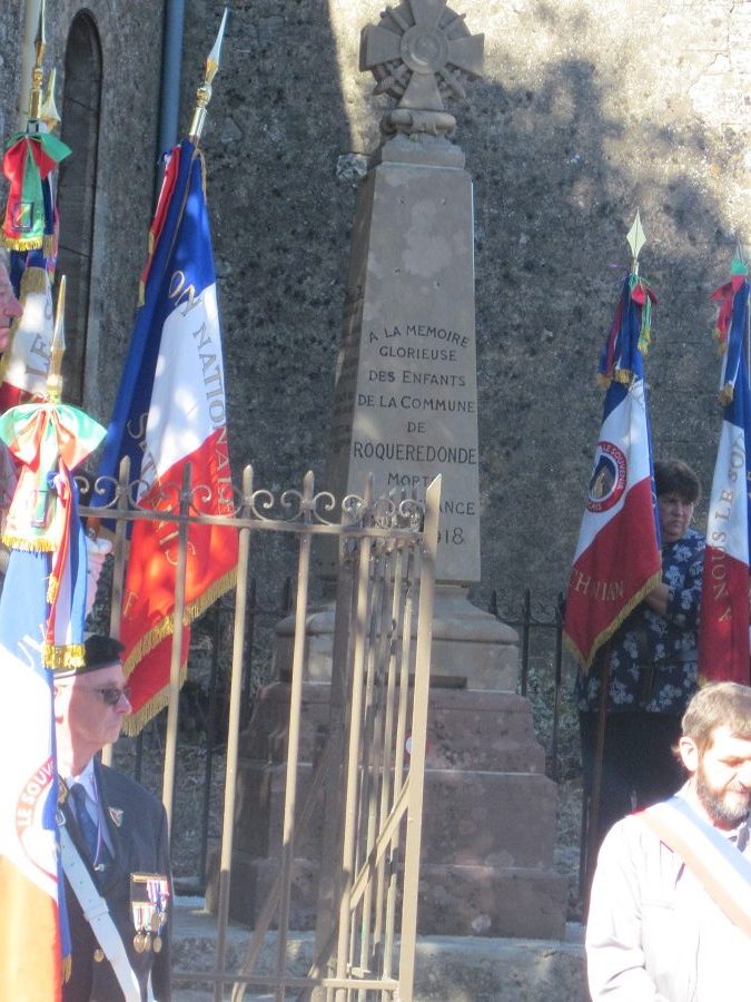 Inauguration des travaux de restauration du Monument aux Morts à Roqueredonde (Hérault), réalisés par le Souvenir Français de Lodève le 29 septembre 2018.