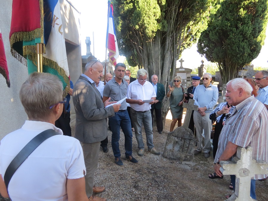Hommage rendu à Pierre Ismert, par le Président du comité du Souvenir Français de Toulouse Centre, Jean-Pierre Mezure en compagnie du Délégué Général du Souvenir Français des Landes.