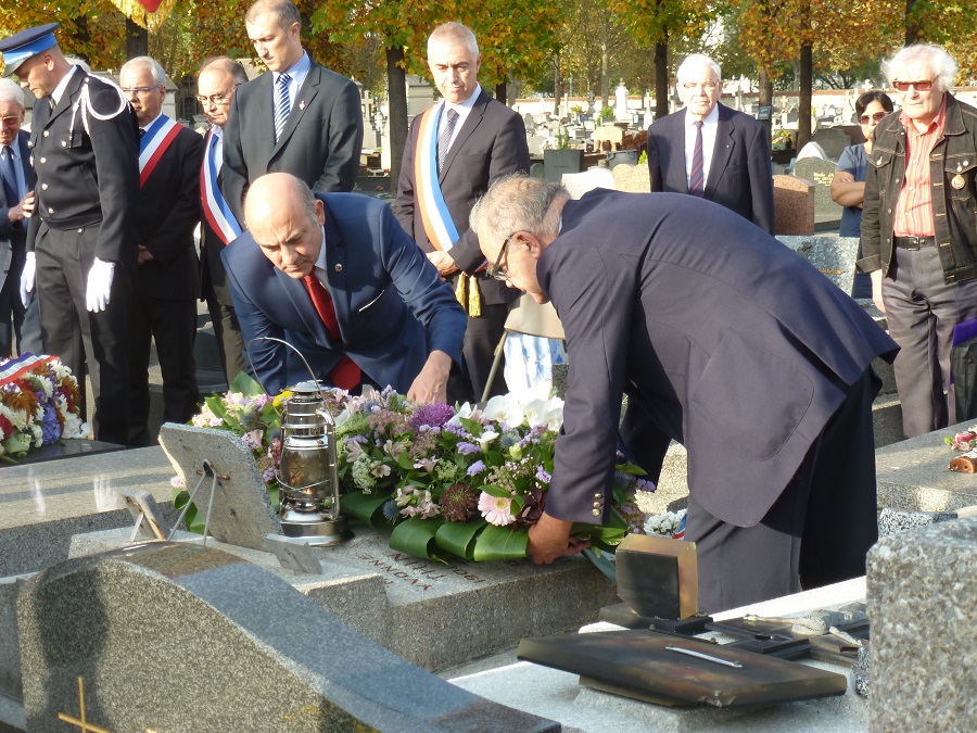 Hommage à Jean Mazloum, Arménien Mort pour la France, organisé dans le cimetière d’Acq par la délégation générale du Souvenir Français pour le Pas-de-Calais le 14 octobre 2018.