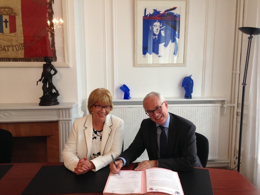 Signature de la convention de partenariat avec la fédération nationale des anciens maires de France le 17 octobre 2018 par le président général du Souvenir Français.