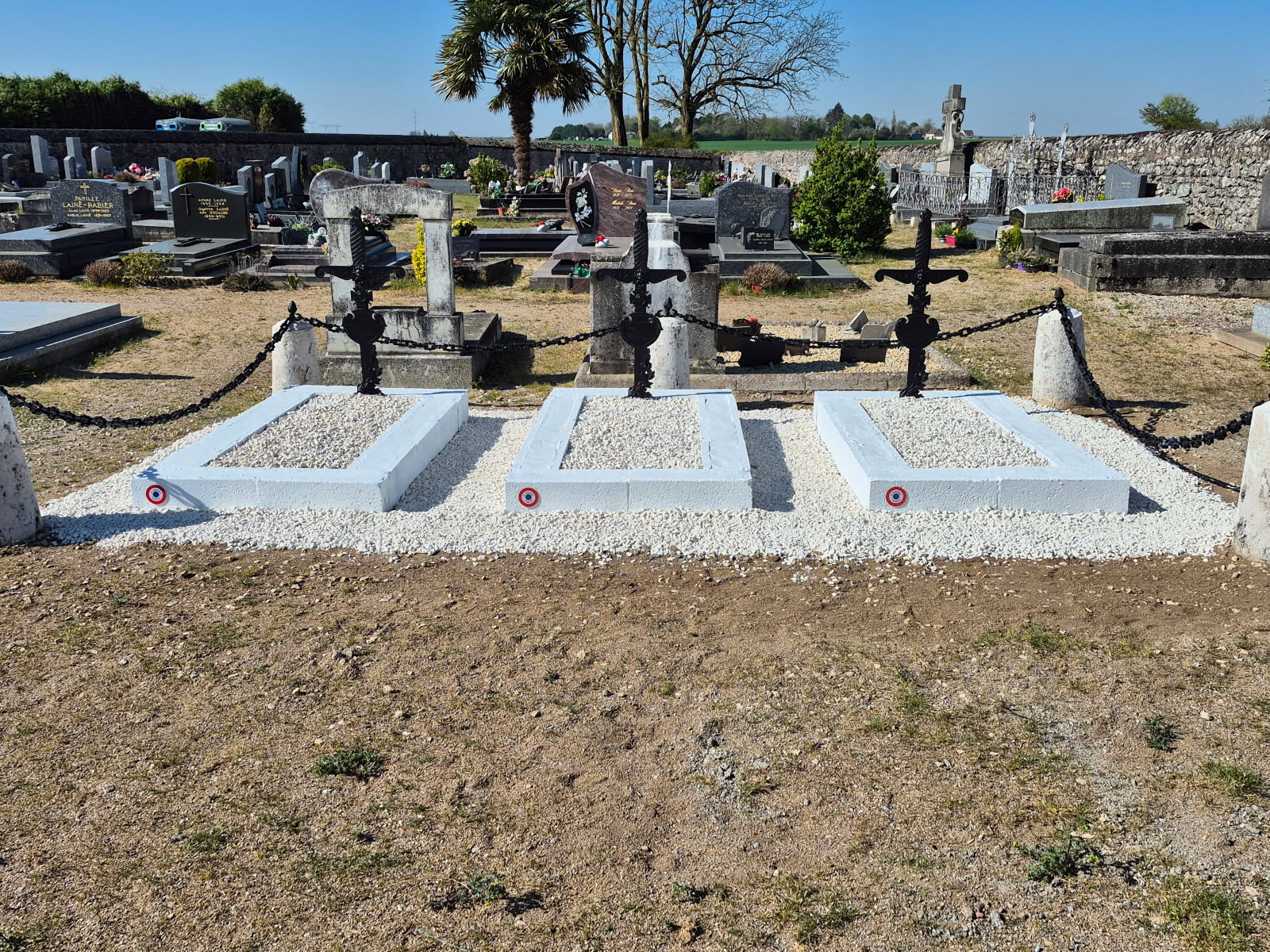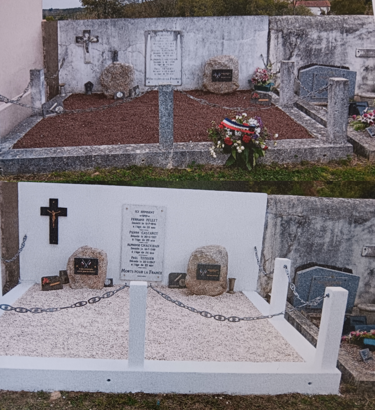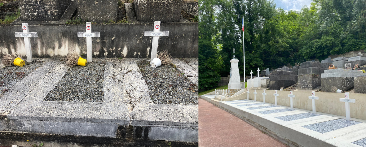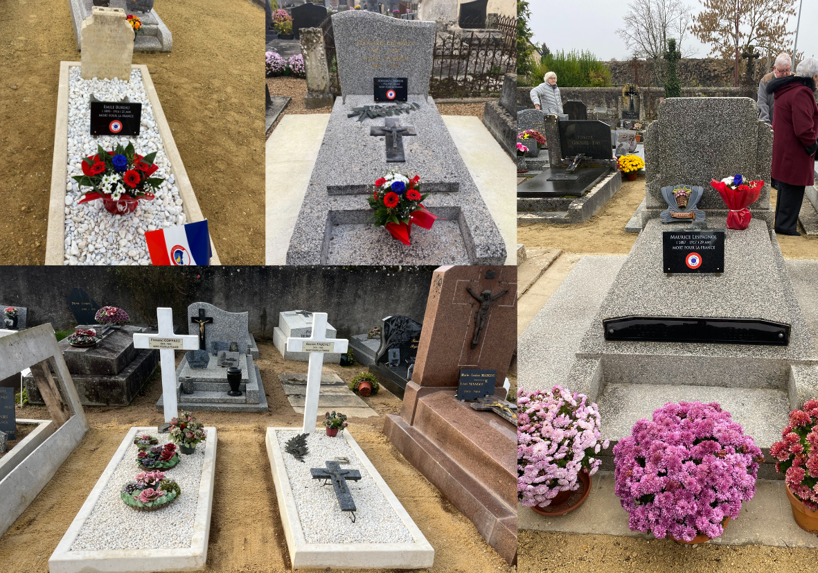 A Huisseau-sur-Mauve (Loiret), les bénévoles et adhérents du Souvenir français ont réalisé un patient travail de réfection de ces tombes laissées à l’abandon (après).