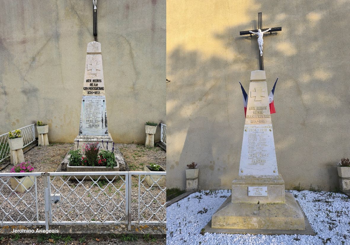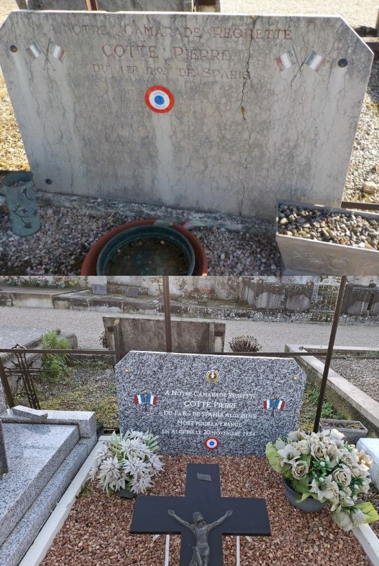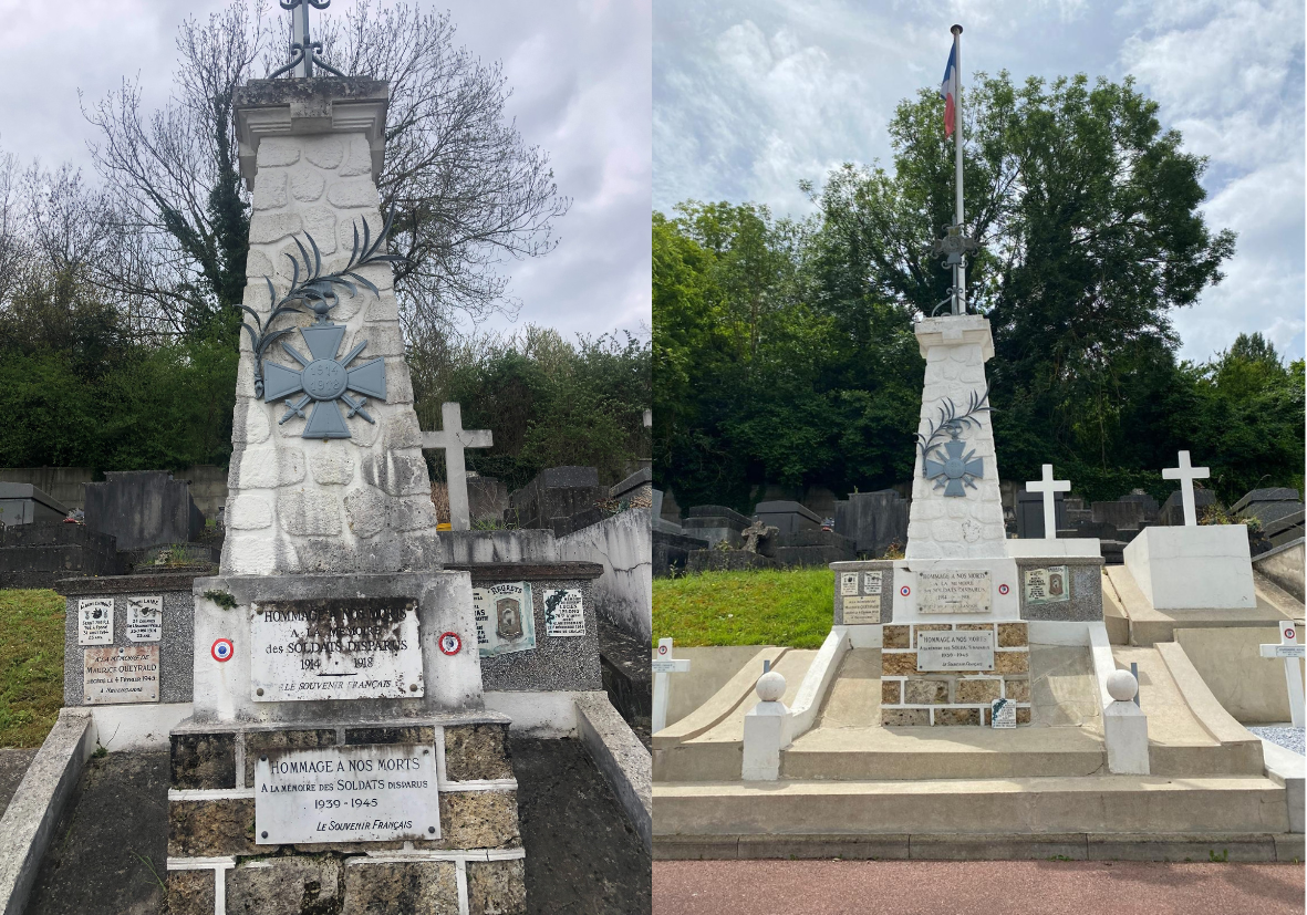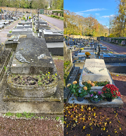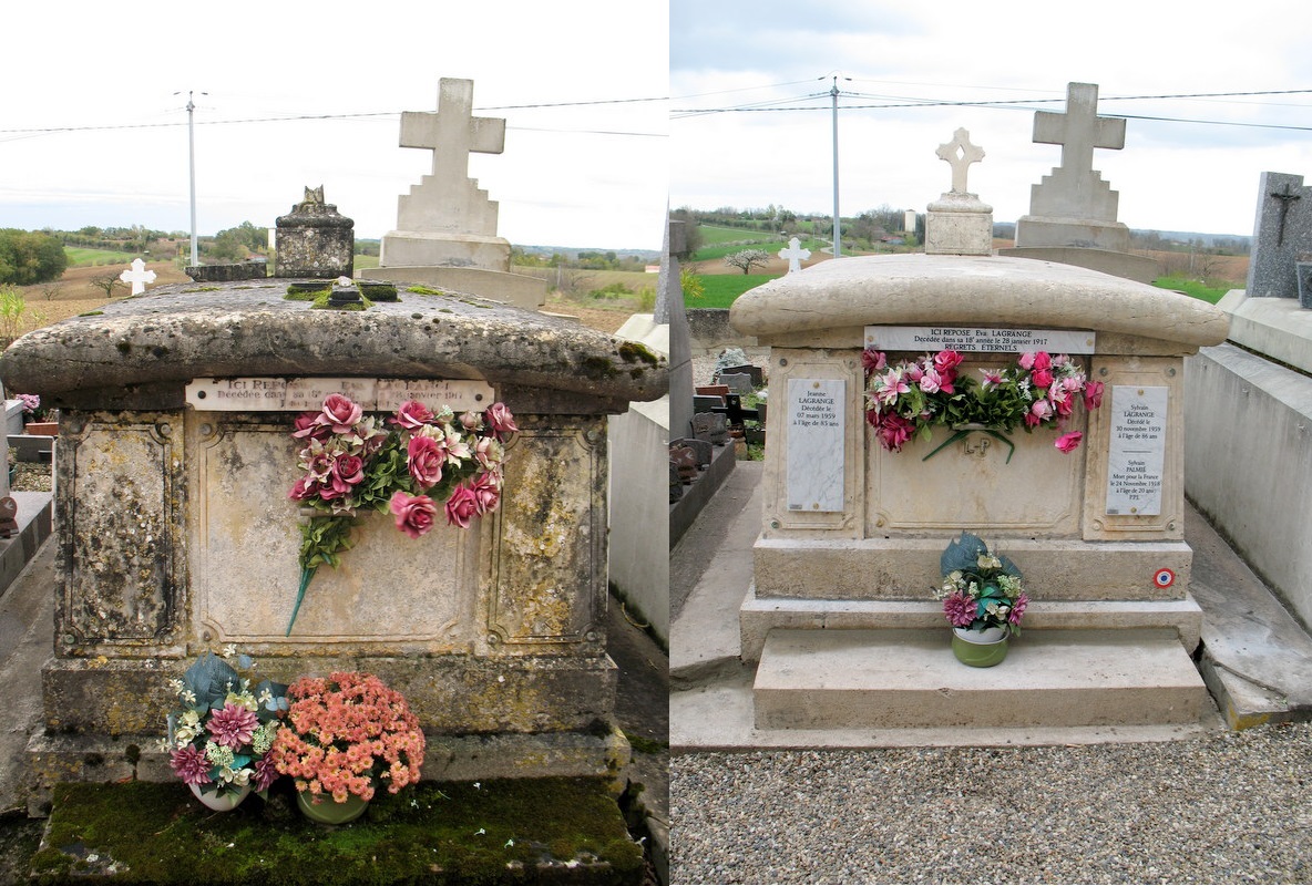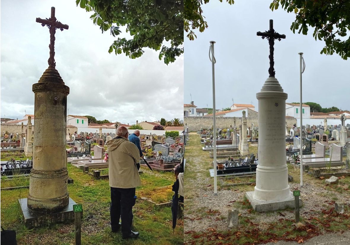 Un avant et un après de la réfection de la tombe appartenant à la famille Servières, dans le cimetière des Espiémont à Caylus (Tarn-et-Garonne).
