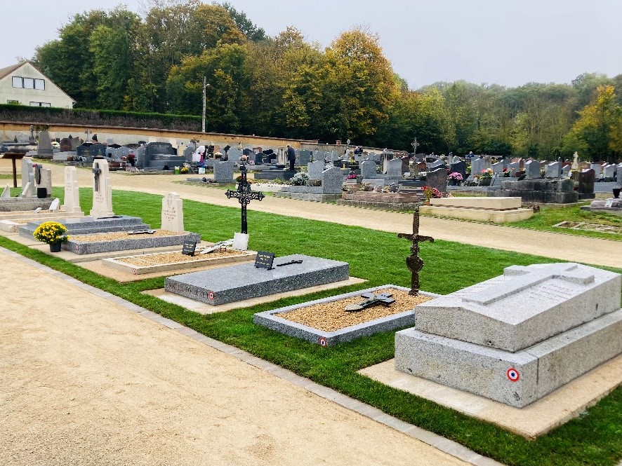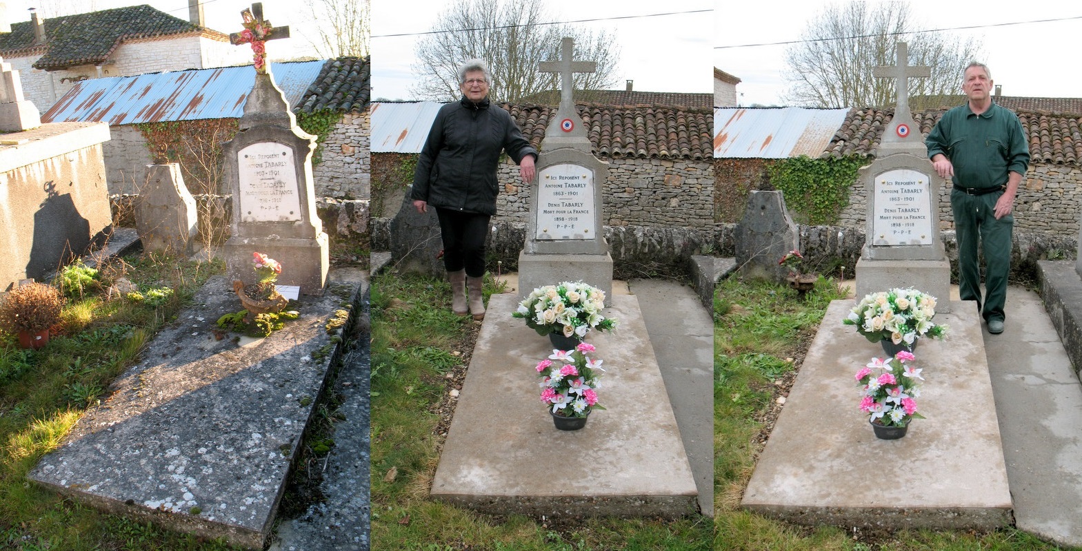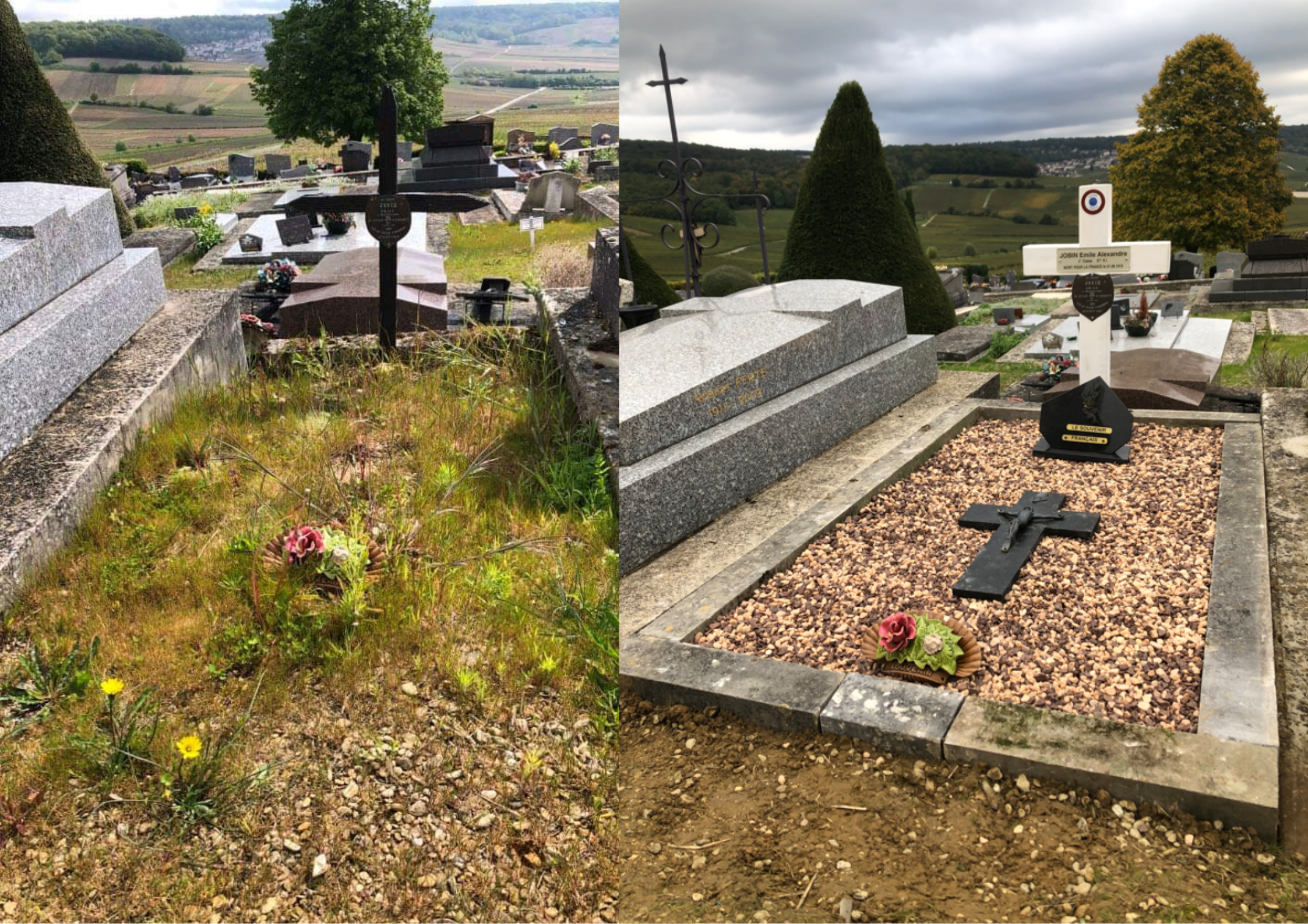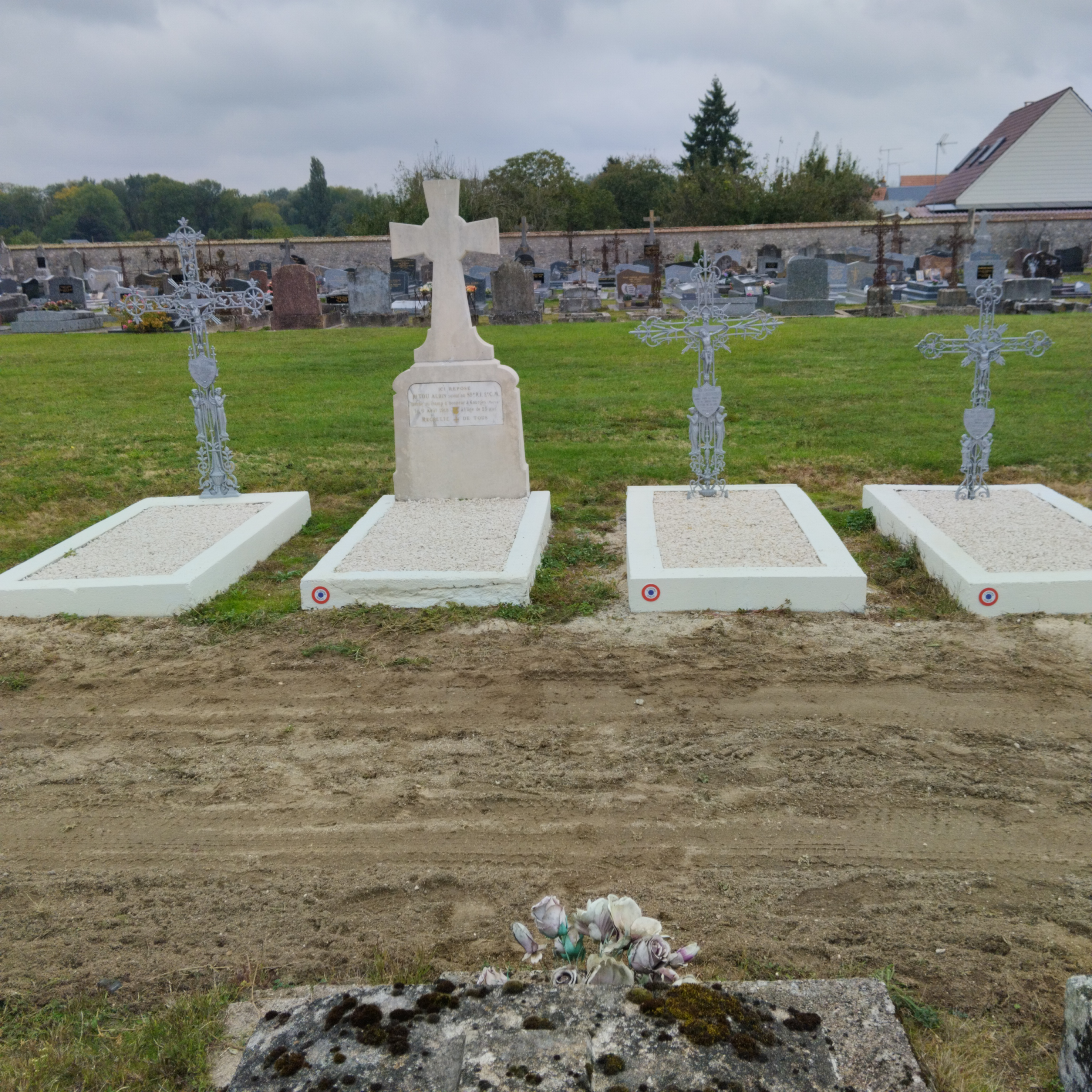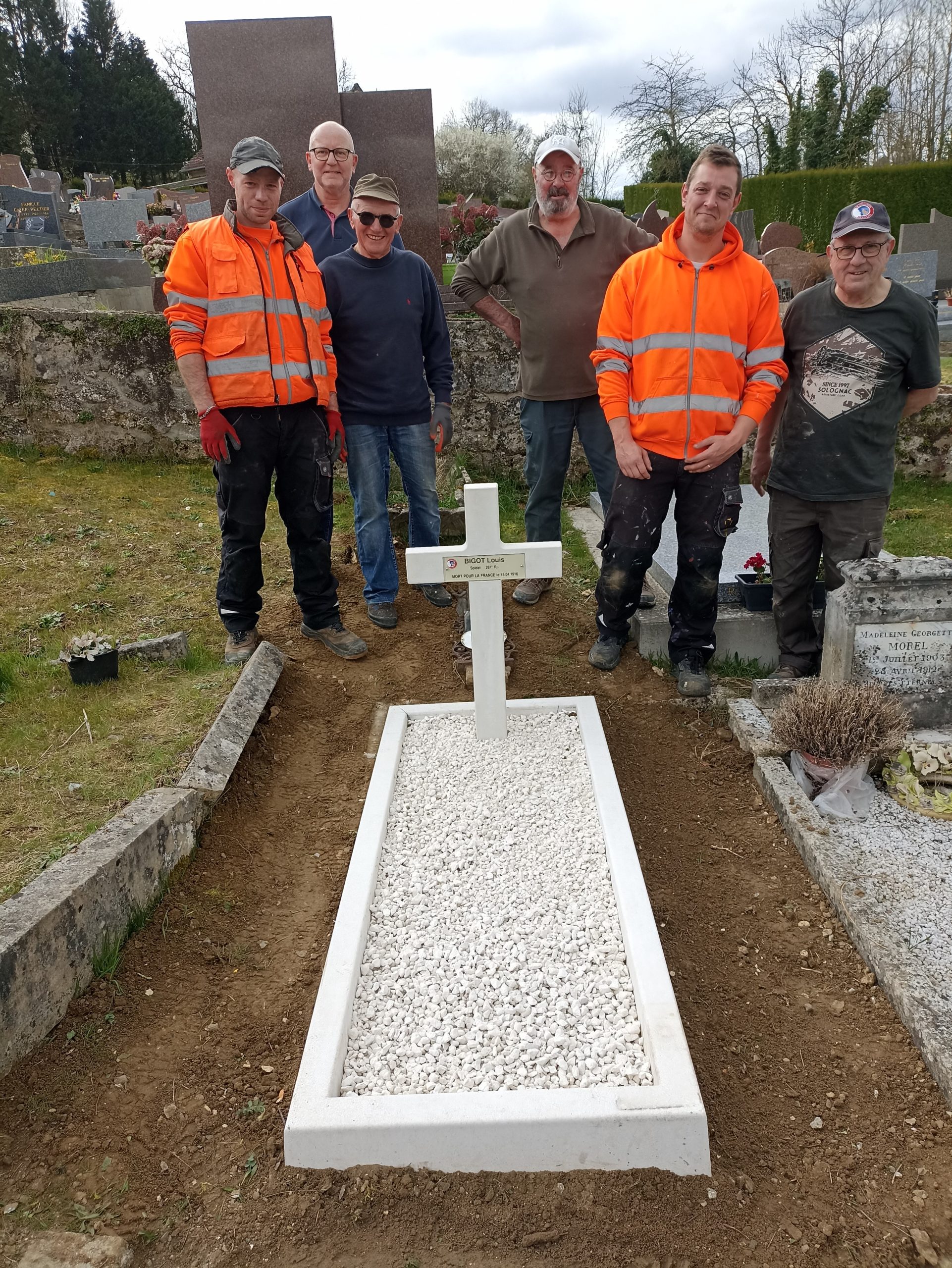 Restauration de la tombe du soldat Jobin, mort en 1918, à Parcy-et-Tigny, dans le cimetière d’Hautvillers (Marne).