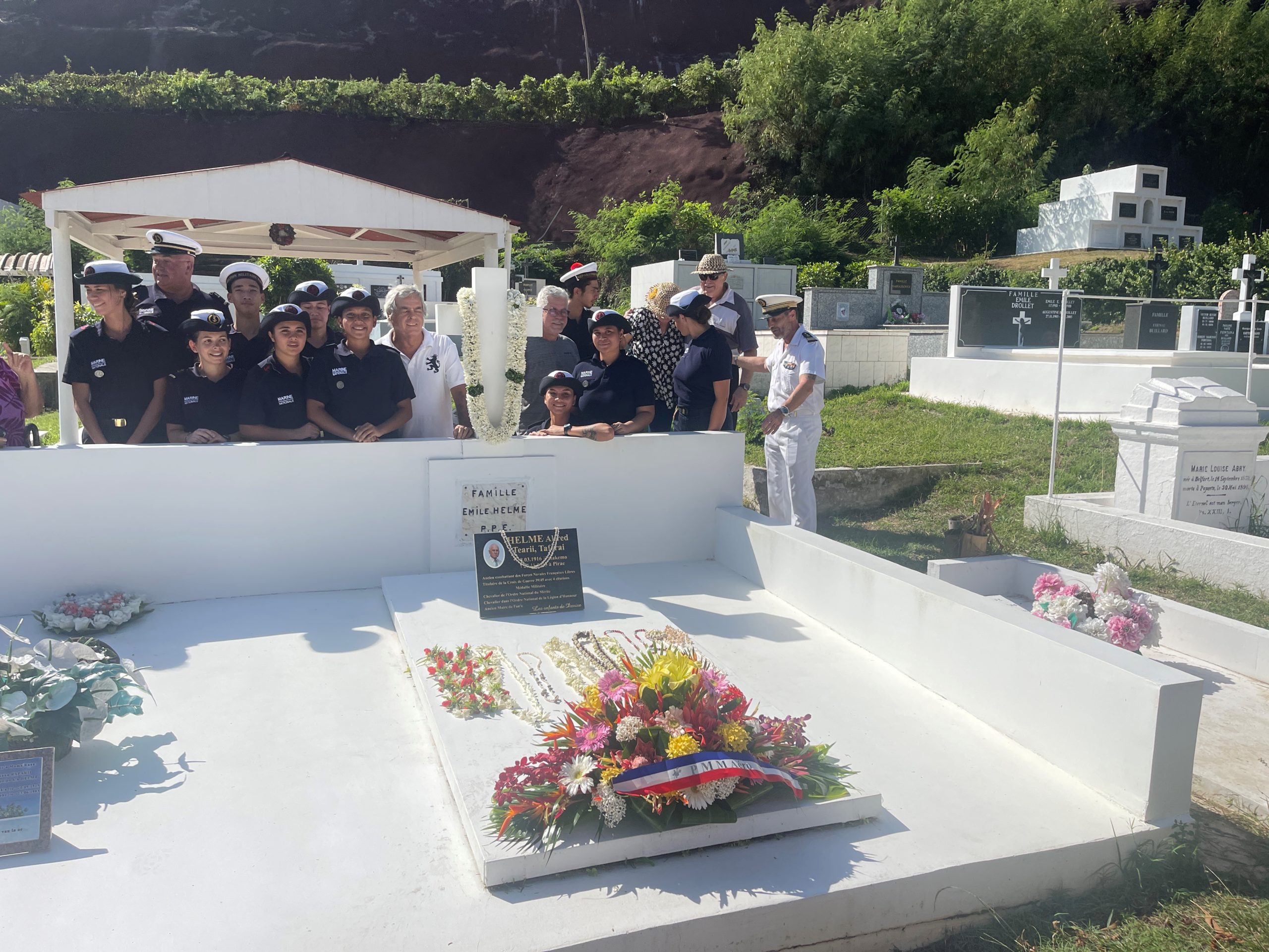 La Délégation Générale du Souvenir Français pour la Polynésie Française a remis un drapeau des Forces navales françaises libres sur le Patrouilleur d’Outre-Mer Teriieroo a Teriierooiterai, juin 2025.