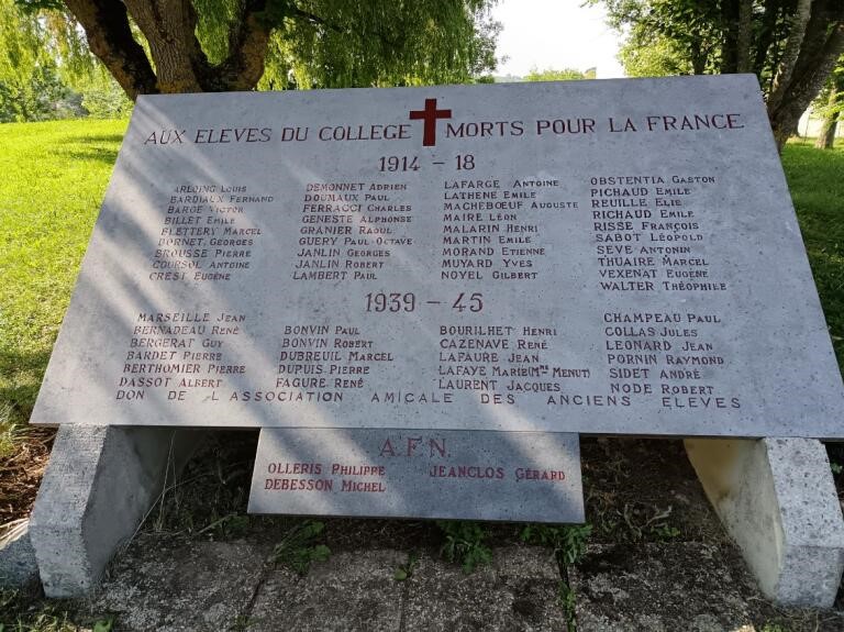 La Délégation Générale pour l’Allier a a participé à la restauration de la stèle des anciens élèves du collège de Cusset « Morts pour la France », située au sein du Lycée Valéry Larbaud de Cusset, juin 2025.