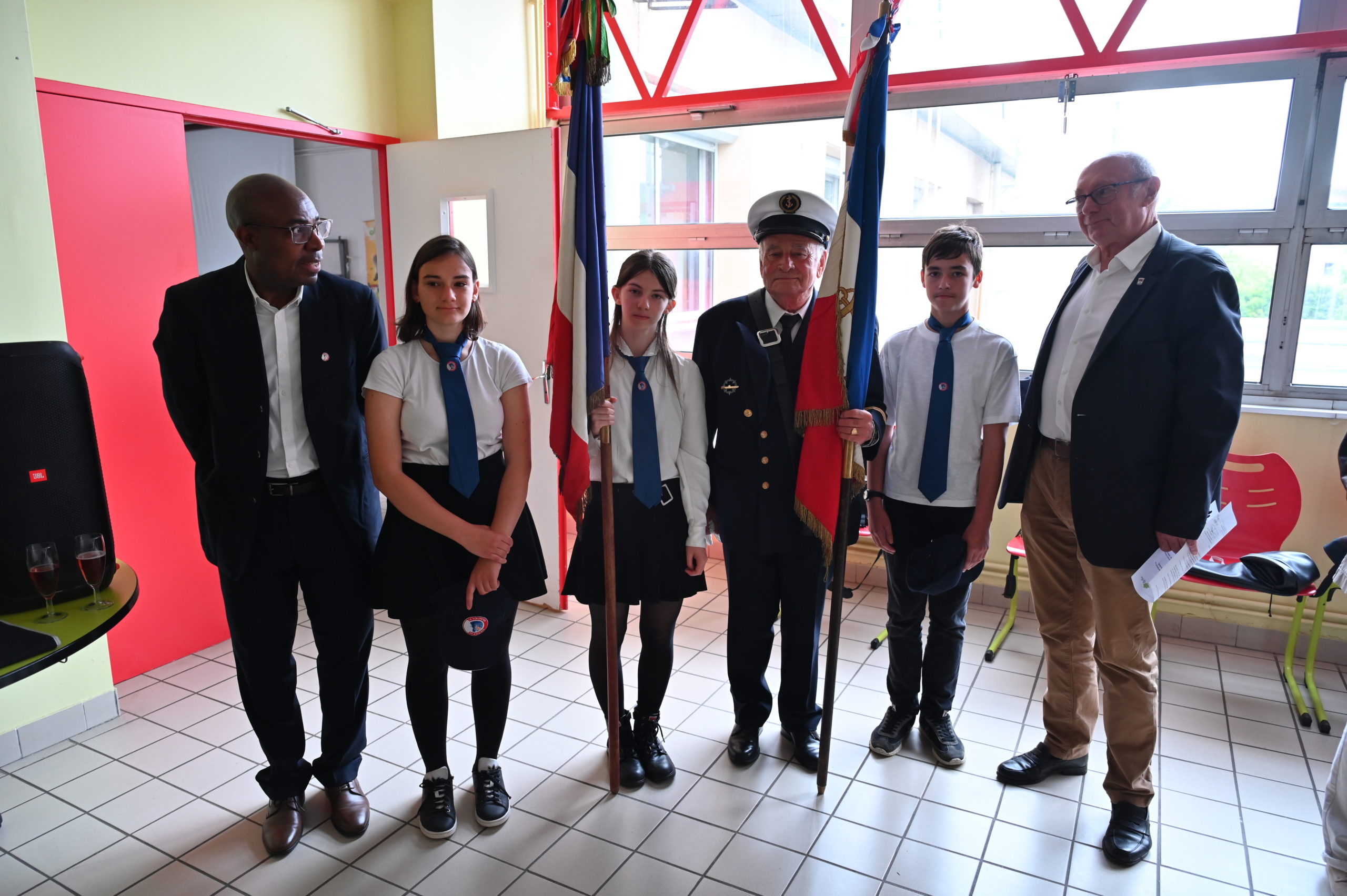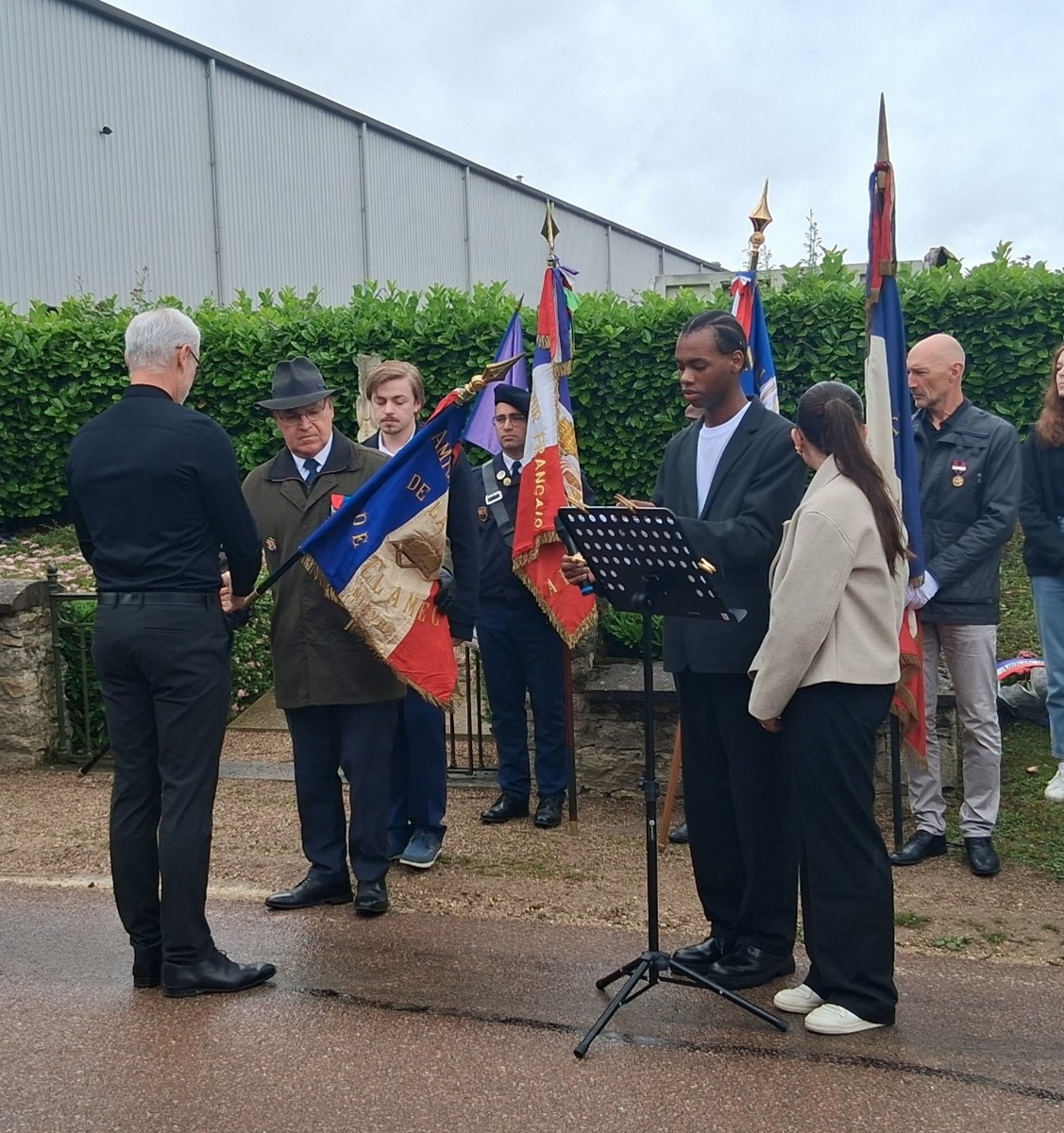 Le 6 juin 2025, lors d’une émouvante cérémonie à la mémoire des 43 tirailleurs fusillés par les Allemands le 18 juin 1940 à Clamecy, Le Souvenir Français de la Nièvre a confié le drapeau de l’amicale des sous-officiers de réserve de la région de Clamecy au lycée Romain Rolland de cette même ville.
