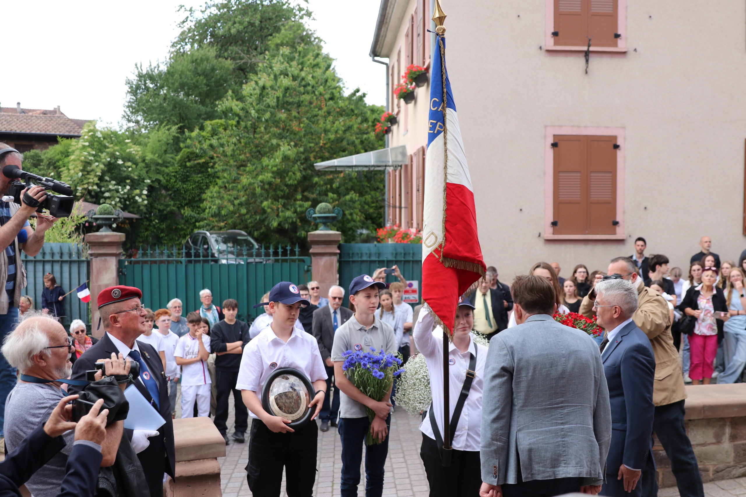 Le 27 mai 2025, la Délégation Générale du Bas-Rhin a remis le drapeau de la section locale de l’UNADIF-FNDIR de Hochfelden au collège de Hochfelden.