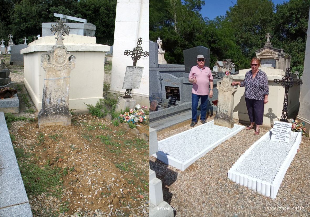 Le comité du Souvenir Français du Quercy (Tarn-et-Garonne) a restauré la tombe de Joseph Schall dans le cimetière de Nègrepelisse, juin 2025.
