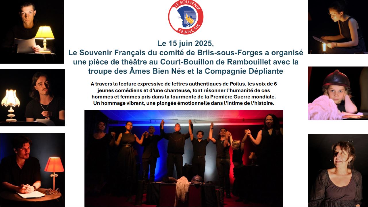 Le 15 juin 2025, le comité de Briis-sous-Forges (Essonne) a organisé une pièce de théâtre au Court-Bouillon de Rambouillet au cours de laquelle la troupe des Âmes bien nées et la Compagnie Dépliant ont fait des lectures expressives de lettres authentiques de Poilus.