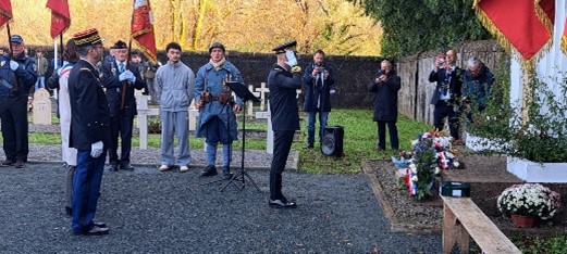 Le mardi 26 novembre 2024, la Délégation générale de la Charente a rendu hommage à Justin Crouzaud, résistant mort en 1944, dans le cimetière de Pressignac.