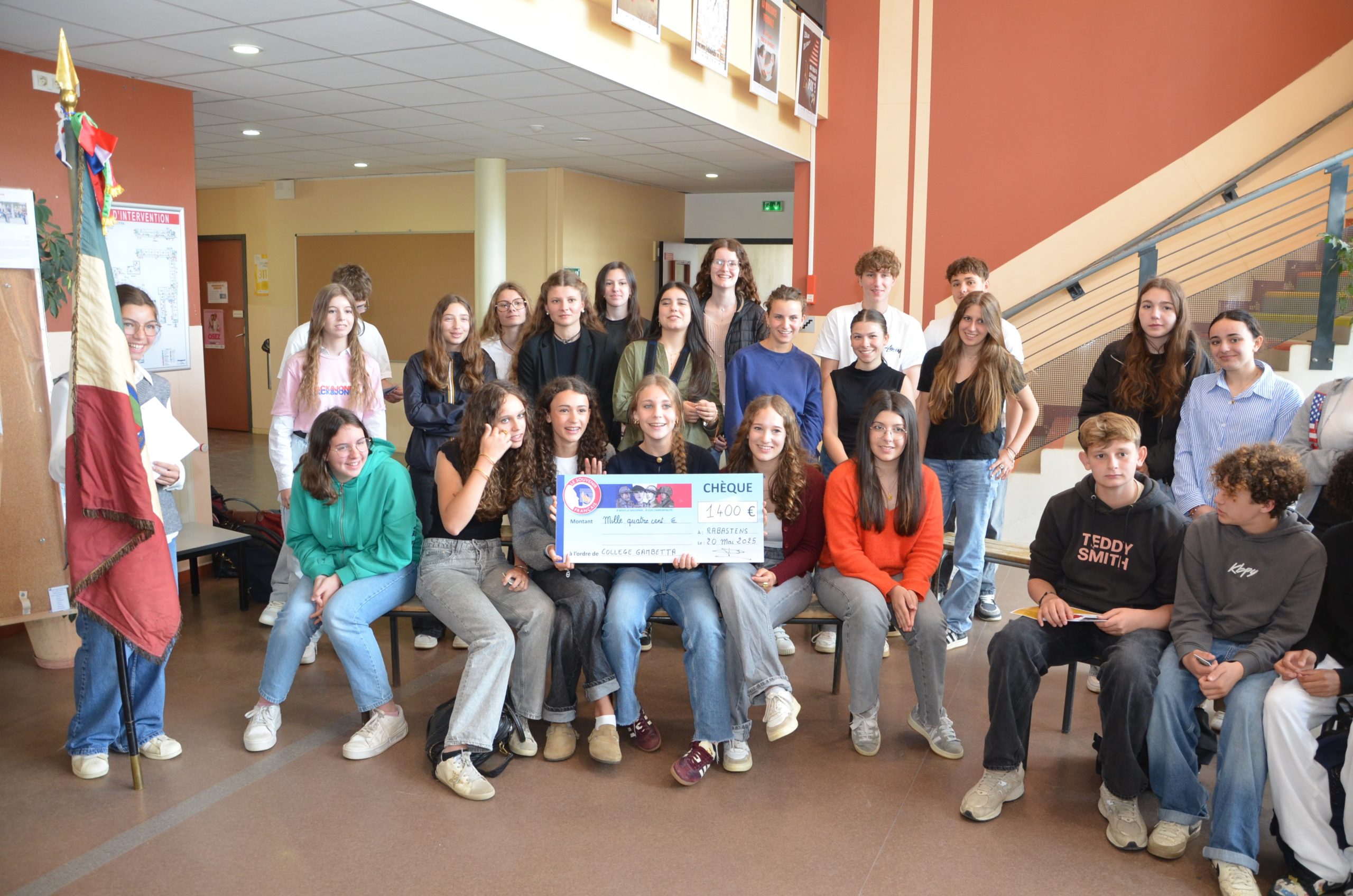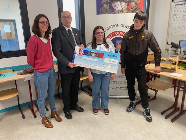 La Délégation Générale de Savoie a remis un chèque pour un voyage mémoriel en Normandie pour 2 classes du collège Georges Sand de La Motte-Servolex.