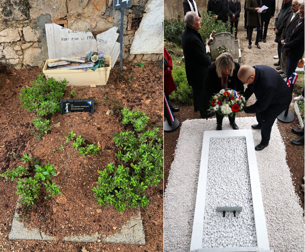 Le comité du Souvenir Français du Quercy (Tarn-et-Garonne) a restauré la tombe de Jean-Paul Veries dans le cimetière de Nègrepelisse, juin 2025.