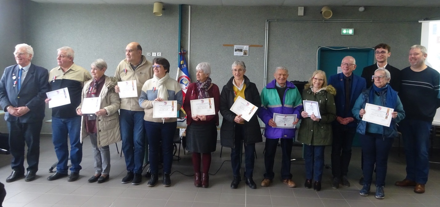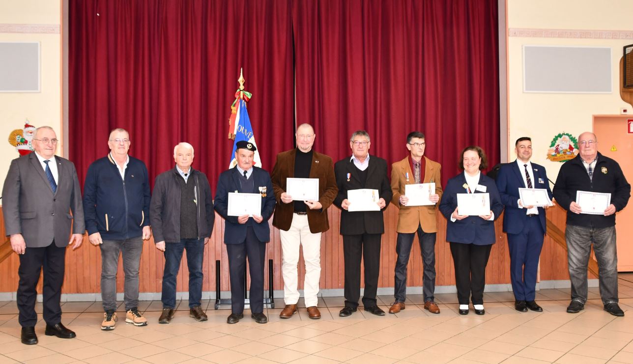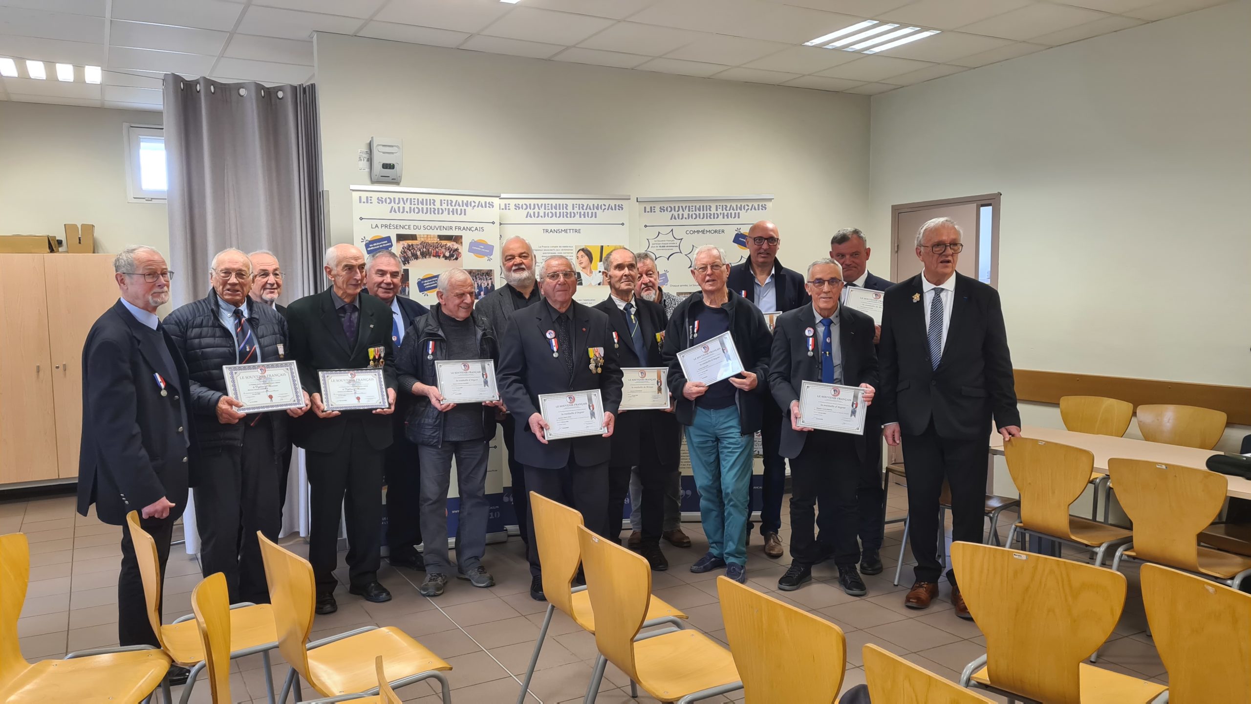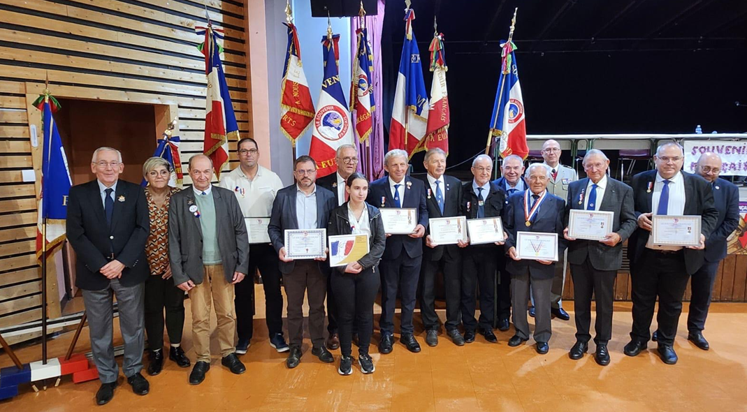 Le comité du Souvenir Français de Bergerac (Dordogne) était présent à la remise de l’insigne d’honneur de 40 ans de porte-drapeau et de la Croix du combattant au major André Rouby, Ancien d’Indochine, le 25 juin 2025.