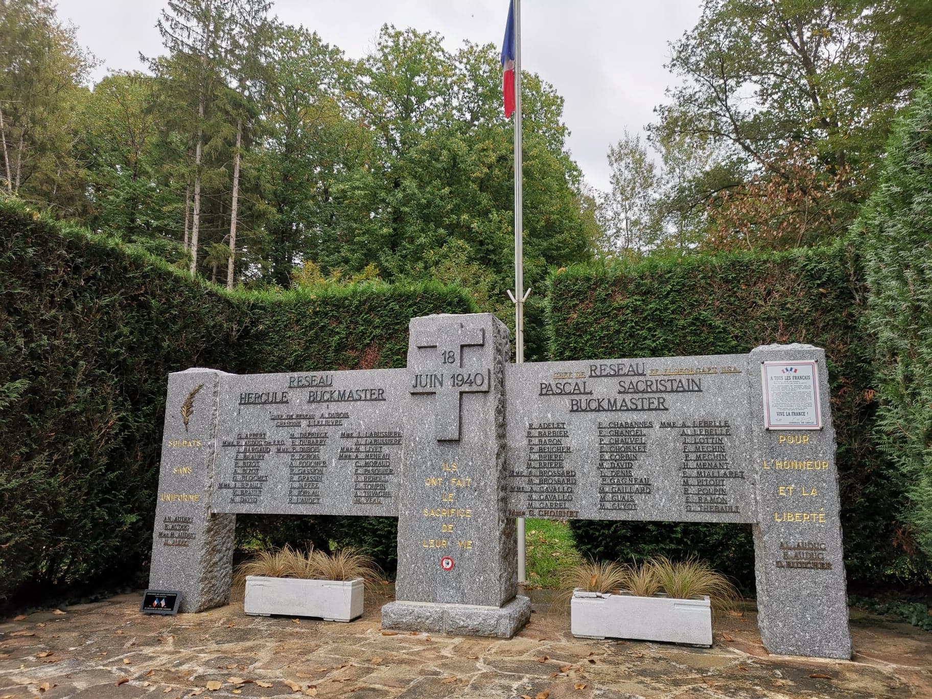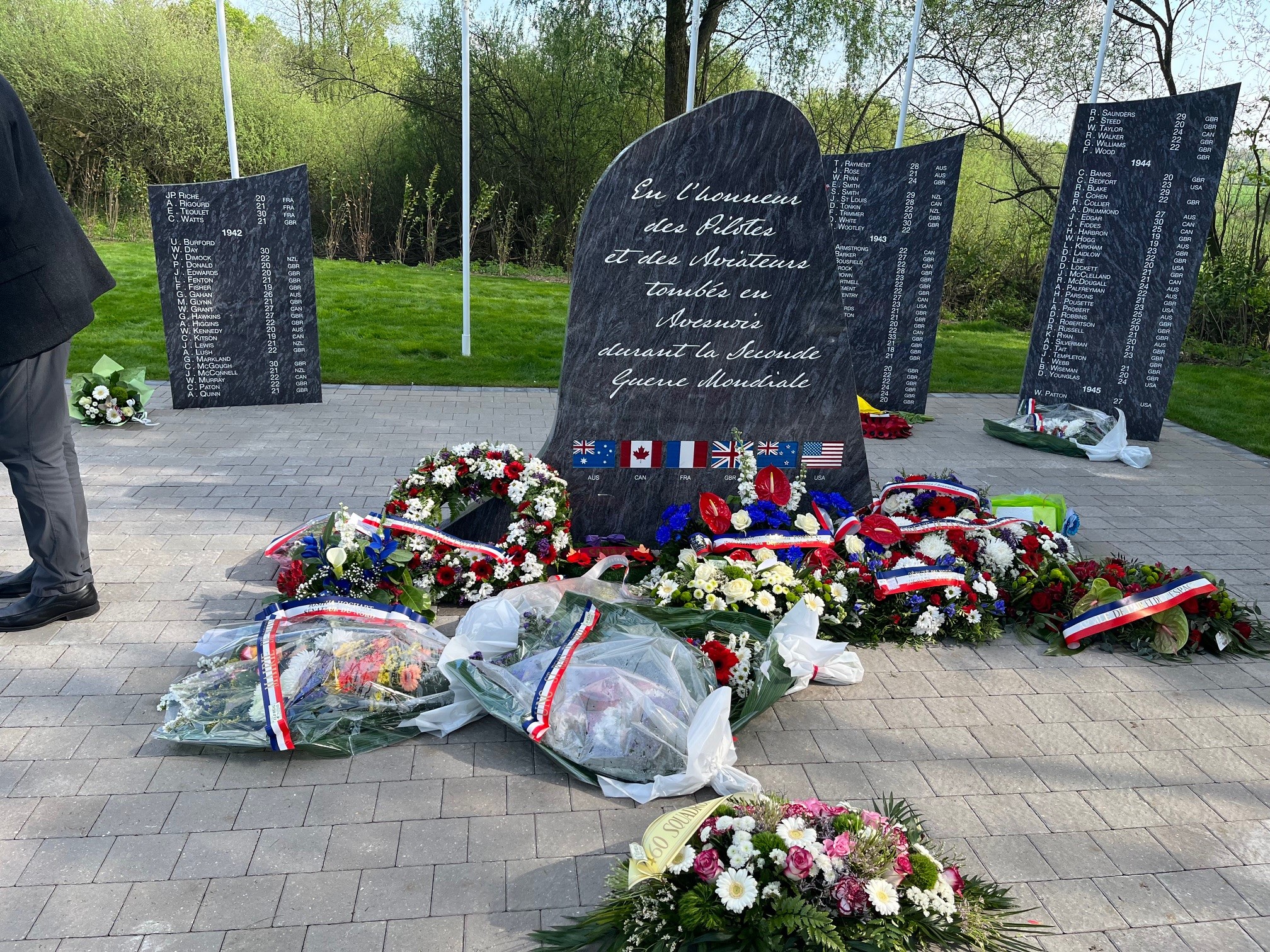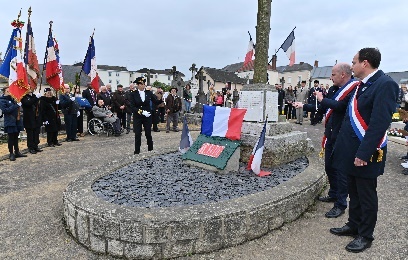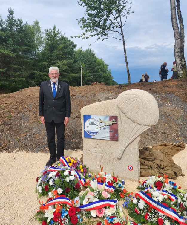 La Délégation générale de la Sarthe a érigé une stèle en hommage aux aviateurs américains de 1944 à Aubigné-Racan, novembre 2024.