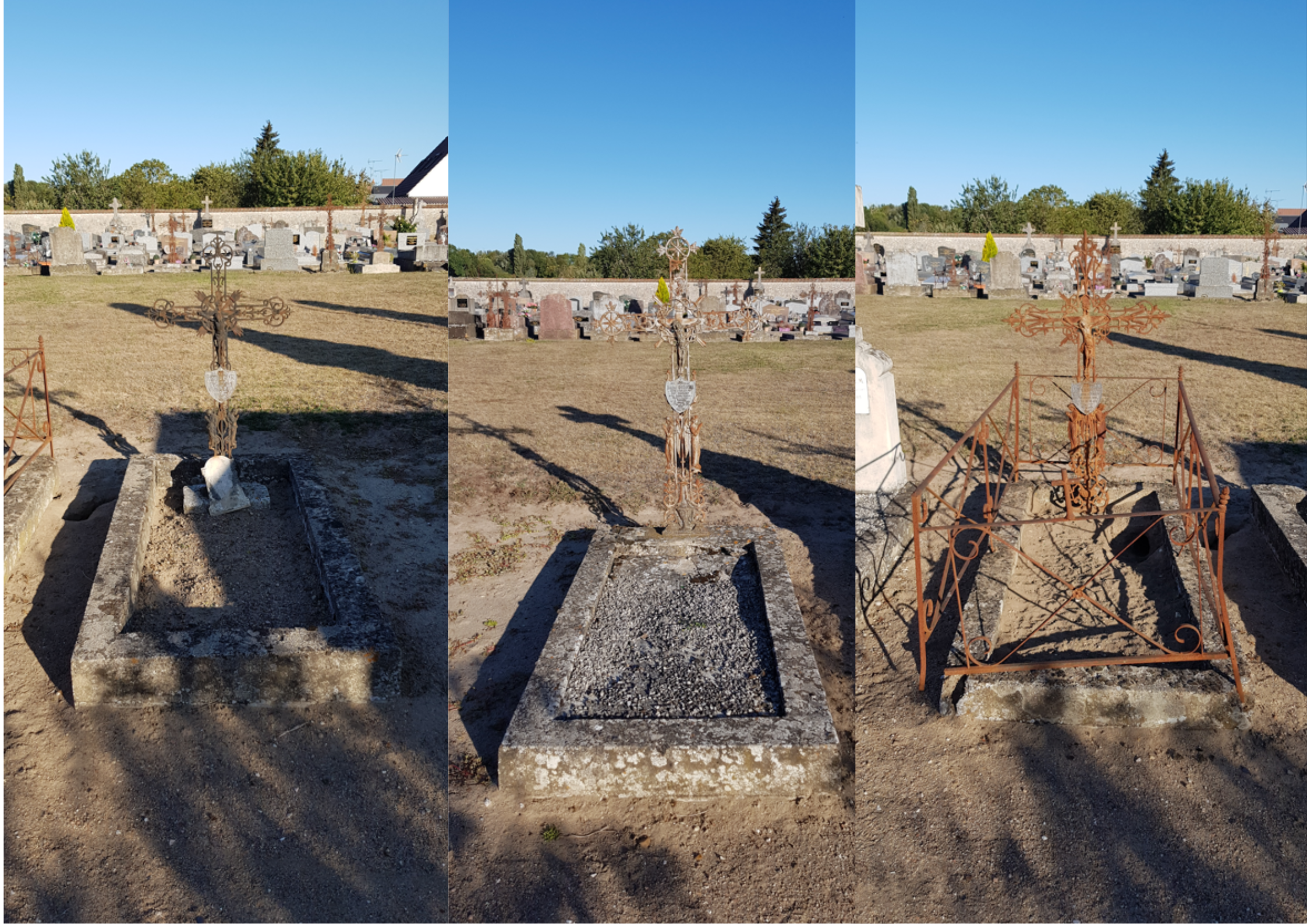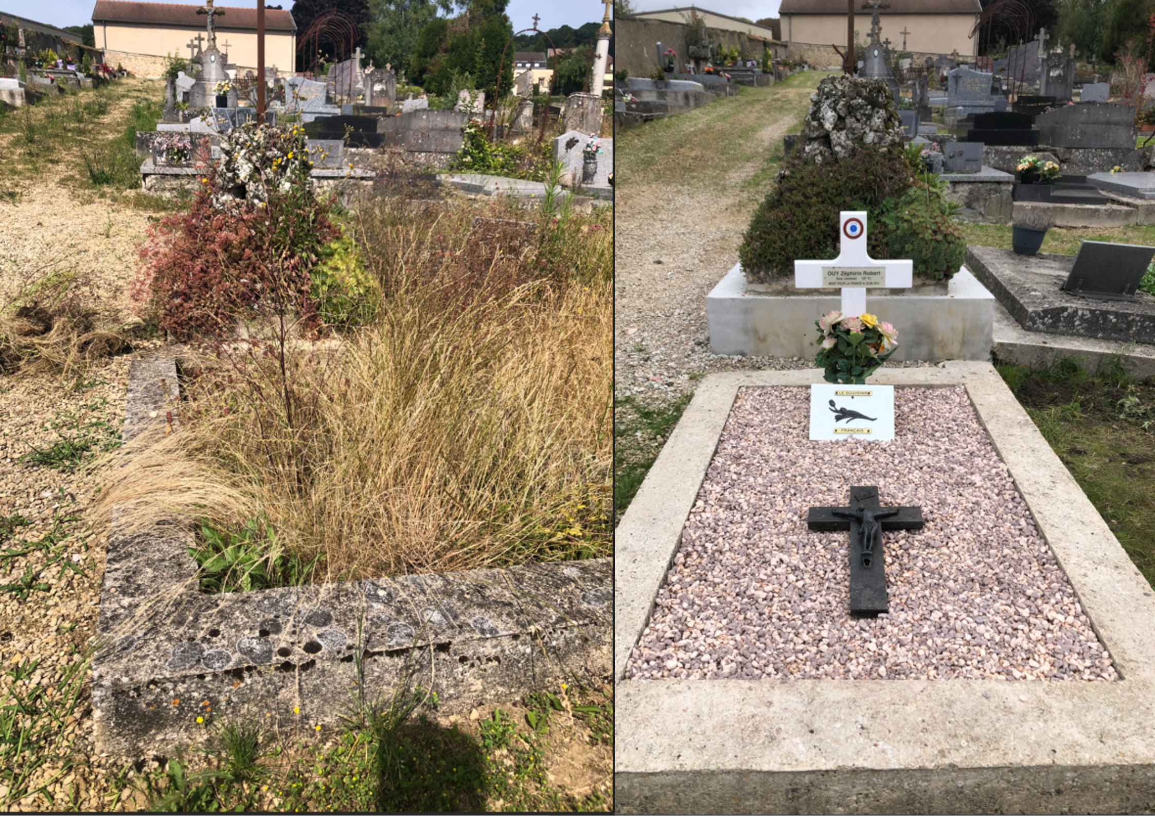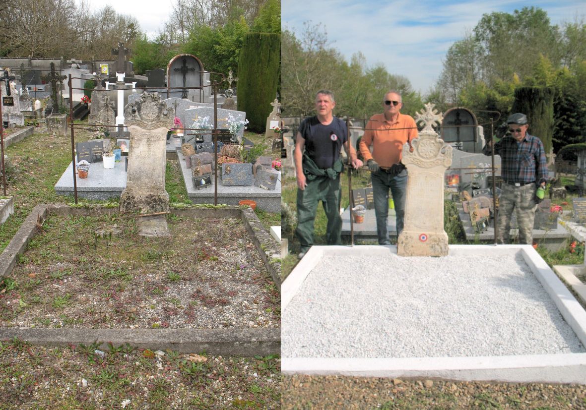 A Huisseau-sur-Mauve (Loiret), les bénévoles et adhérents du Souvenir Français ont réalisé un patient travail de réfection de ces tombes laissées à l’abandon (avant).