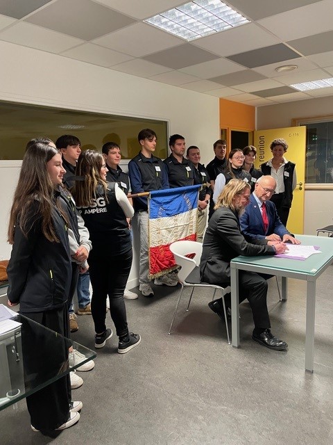 Le 25 octobre 2024, un drapeau Rhin et Danube a été remis à la section de Redjas El Ferada à l’Institut catholique d’études supérieures de La Roche-sur-Yon (Vendée).