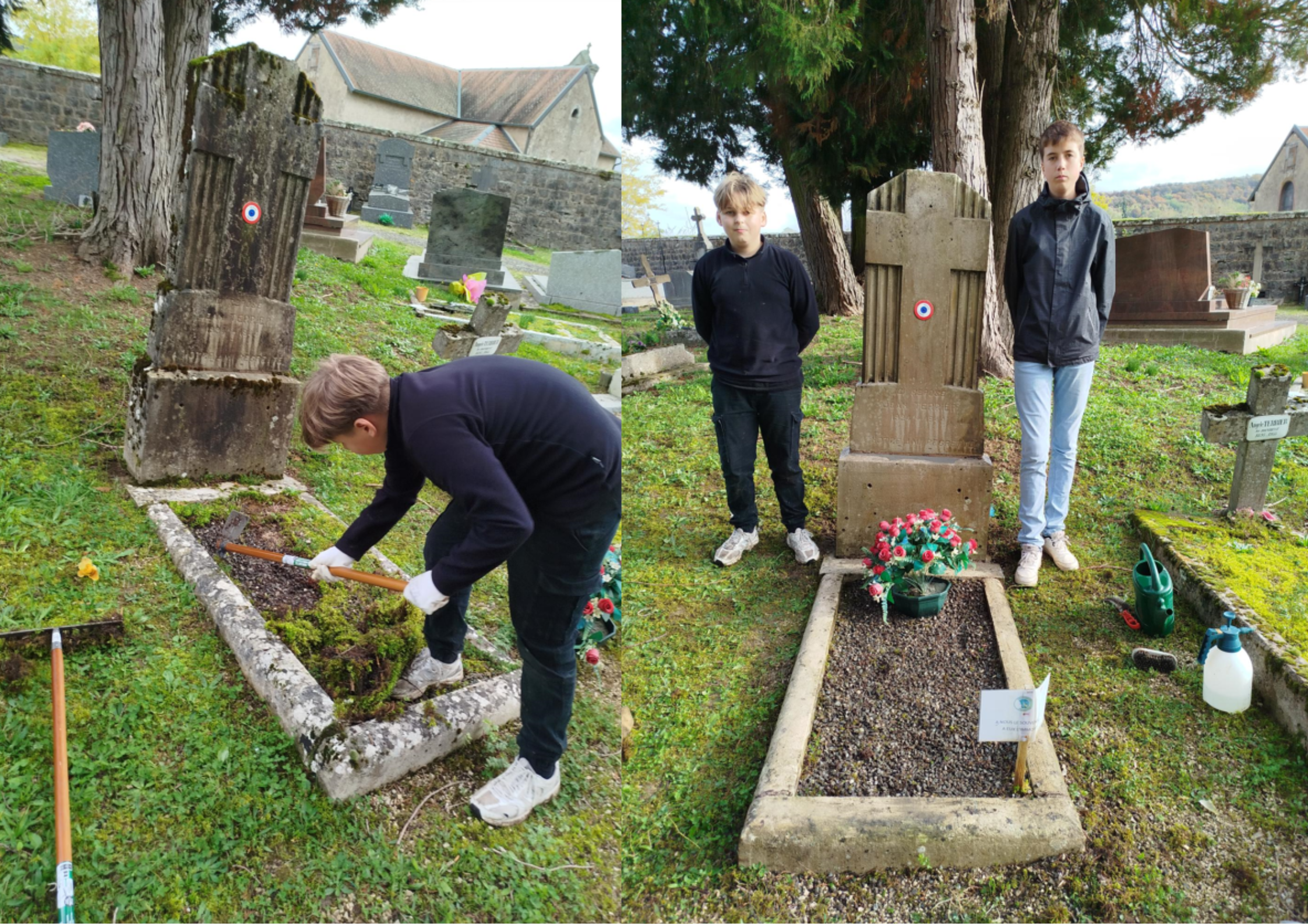 L’action de nos jeunes adhérents a permis de restaurer et d’entretenir la tombe d’un soldat Mort pour la France, enterré dans le cimetière de Rougemont (Doubs).