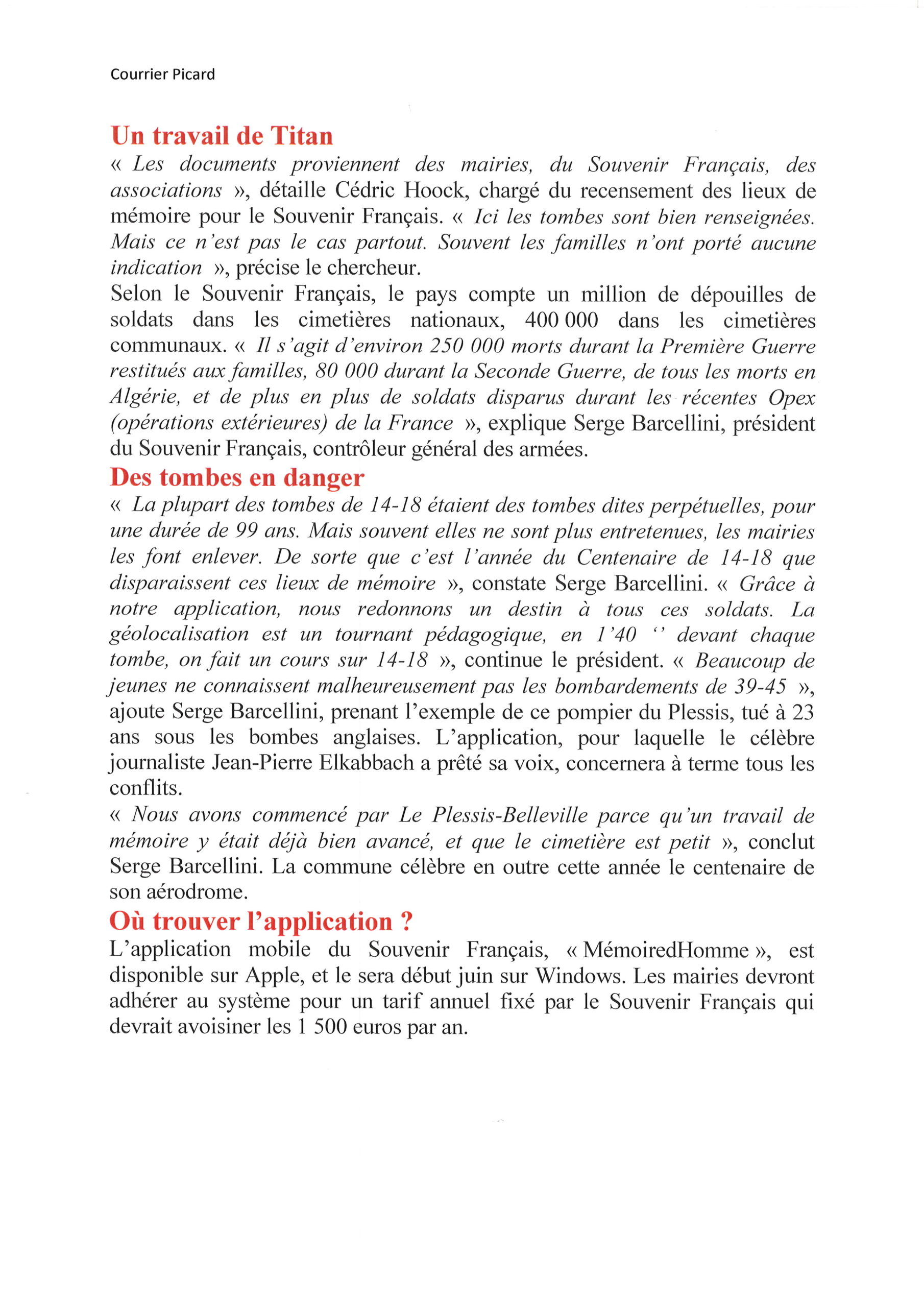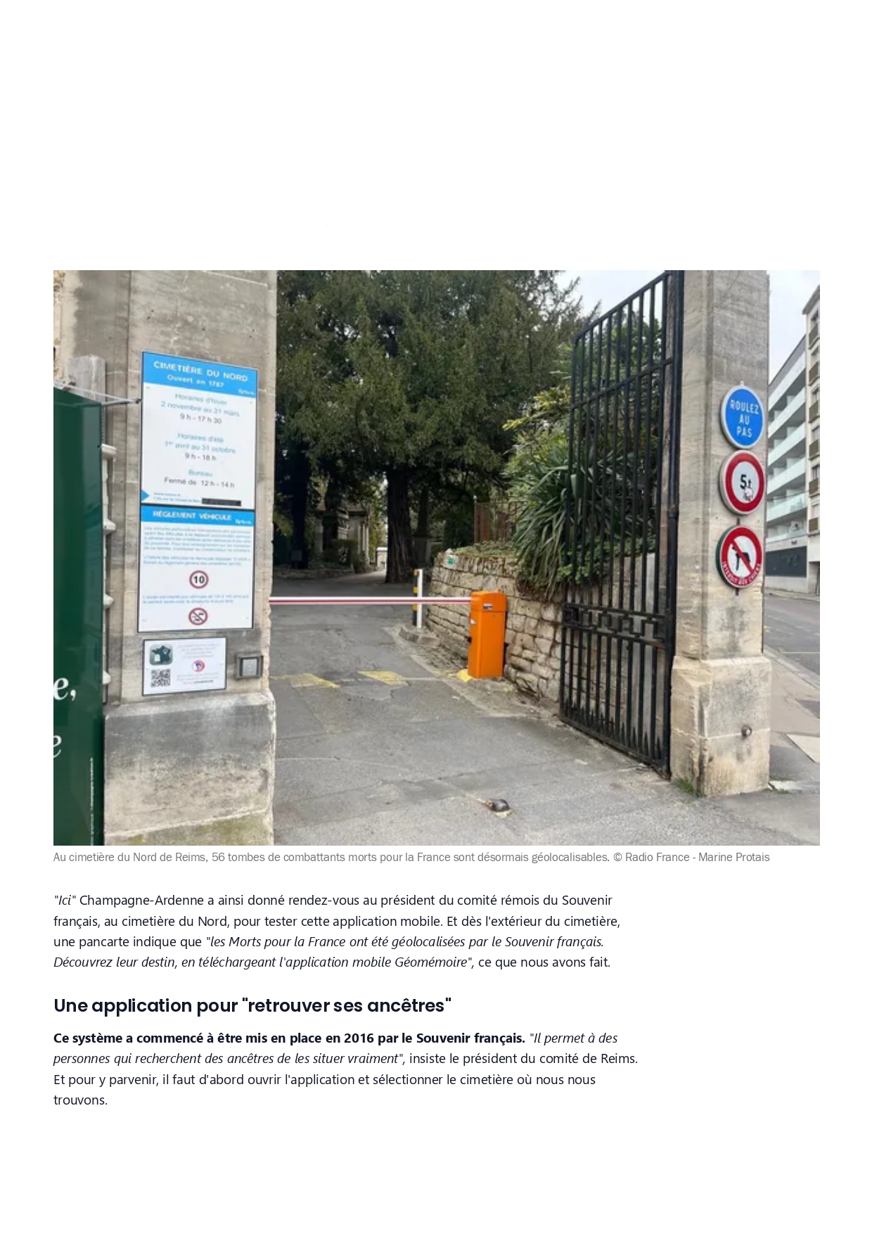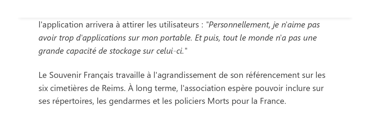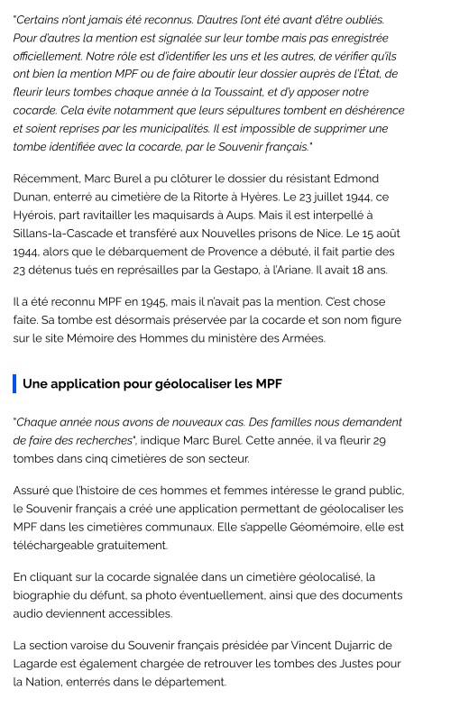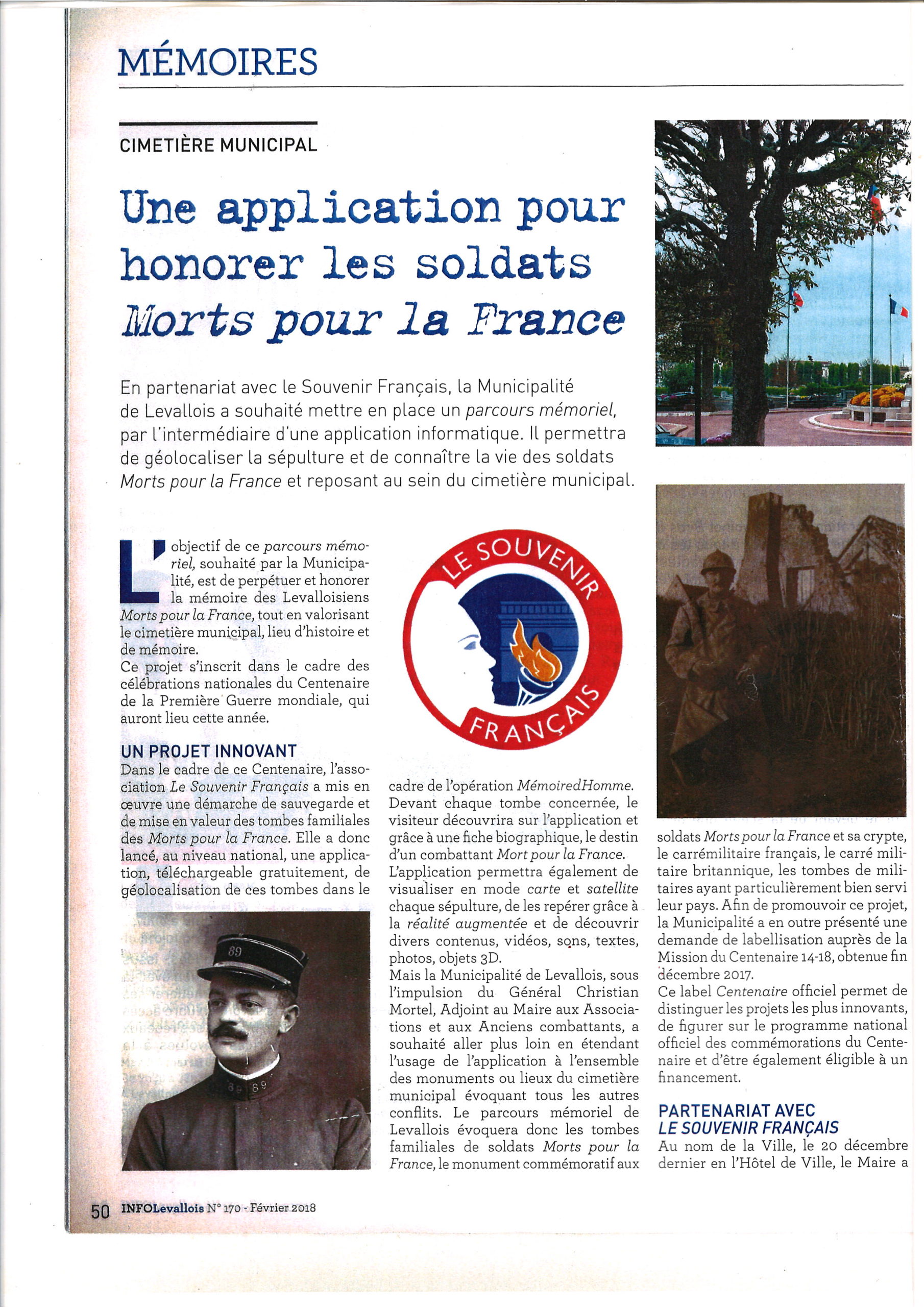 En 2016, Le Souvenir Français a créé l’application GéoMémoire. Téléchargeable gratuitement sur smartphone et tablette, elle géolocalise les tombes des « Morts pour la France » dans les cimetières communaux.