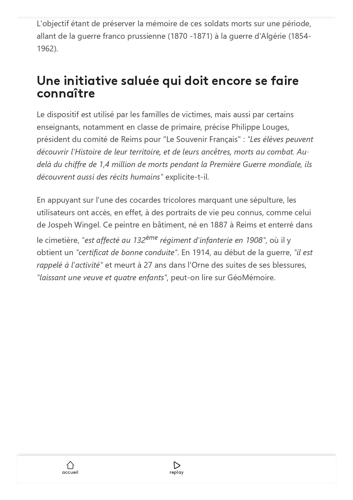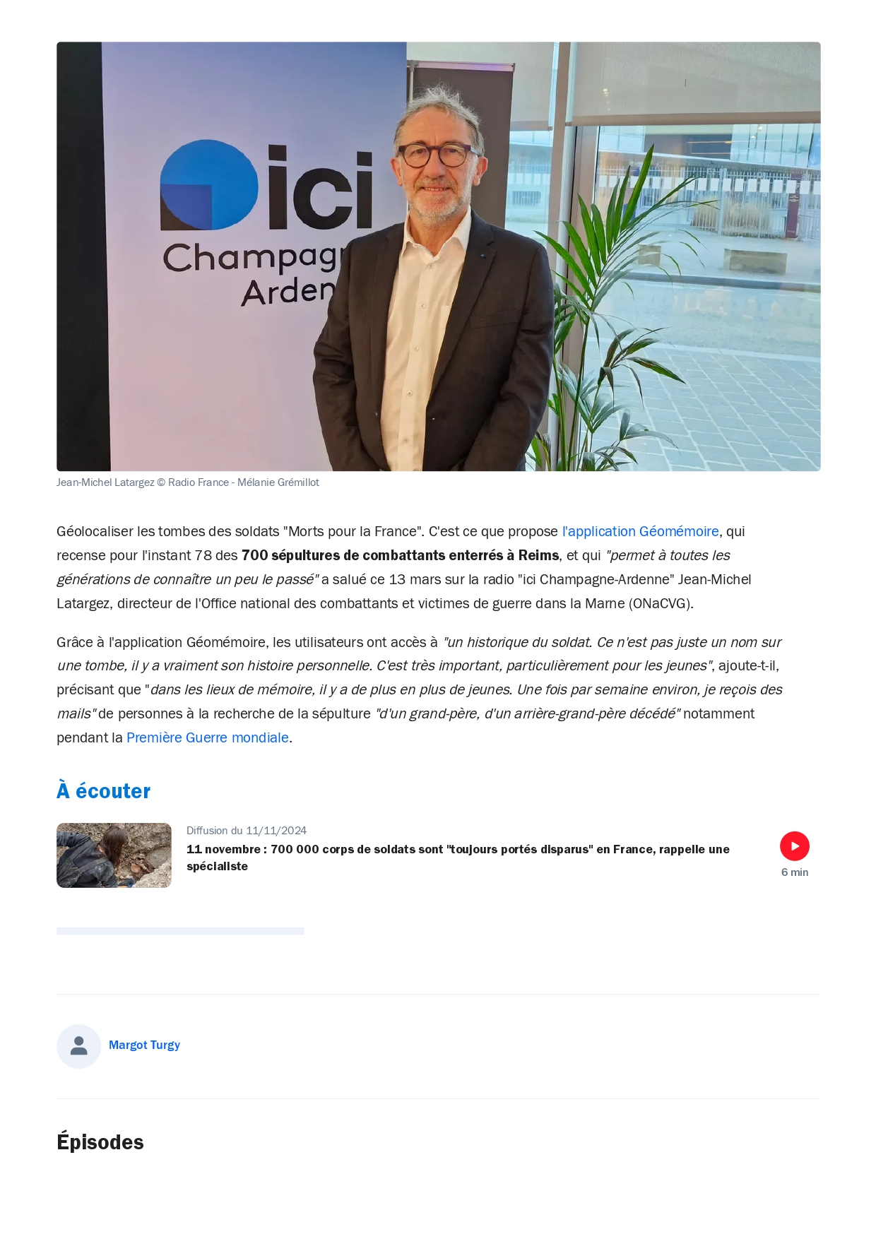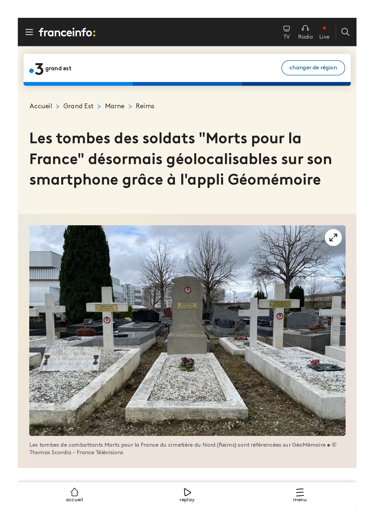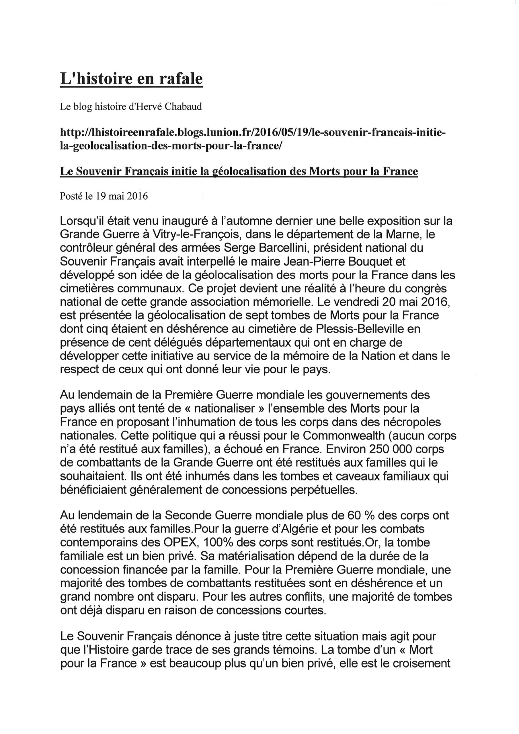 En 2016, Le Souvenir Français a créé l’application GéoMémoire. Téléchargeable gratuitement sur smartphone et tablette, elle géolocalise les tombes des « Morts pour la France » dans les cimetières communaux.