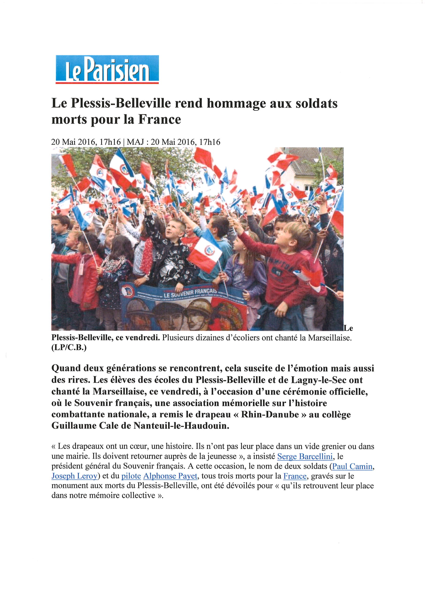 Des élèves des écoles Buisson et Fronval ont participé à l’inauguration, ils ont ainsi pu découvrir le destin de ces « Mort pour la France » parmi lesquels Léon Guenot, né le 14 décembre 1916 à Issy-les-Moulineaux, Hauts-de-Seine (92). Ajusteur de profession, il est le fils d’Adolphe Guenot et de Jeanne Guenot, née Laure. Appartenant à la classe 1937, Léon Guenot participe avec son bataillon au combat de la Bresle dans la Somme où il est blessé. Evacué, il est fait prisonnier le 12 juin 1940 sur la plage de Saint-Valéry-en-Caux, Seine Maritime (76). Interné dans plusieurs camps de prisonniers en Allemagne, le dernier connu étant le Stalag VIK 326, il décède le 24 juillet 1945 affaibli par cinq années de captivité.