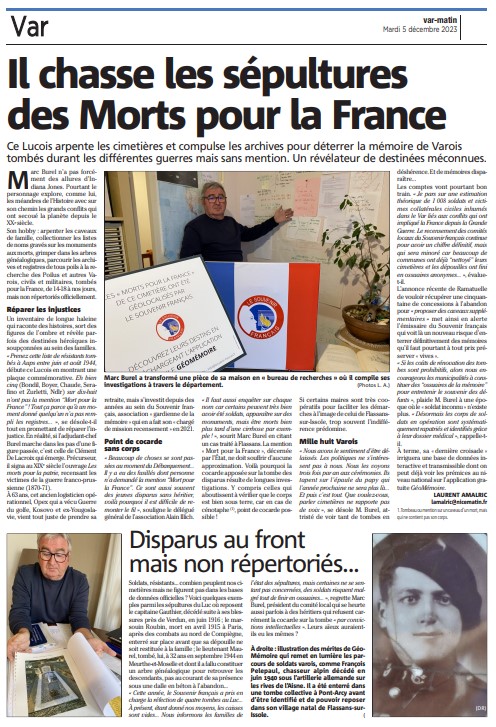 Découvrez le destin des combattants « Morts pour la France » inhumés dans les cimetières communaux !