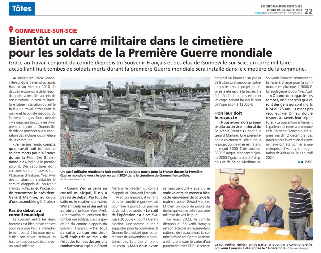 Ce projet a été rendu possible grâce à l’implication de la municipalité d’Hautot-sur-Mer et du comité du Souvenir Français de Dieppe.