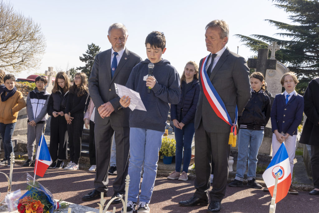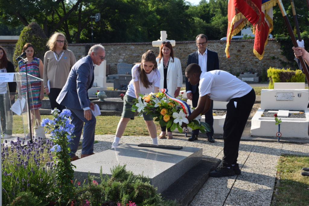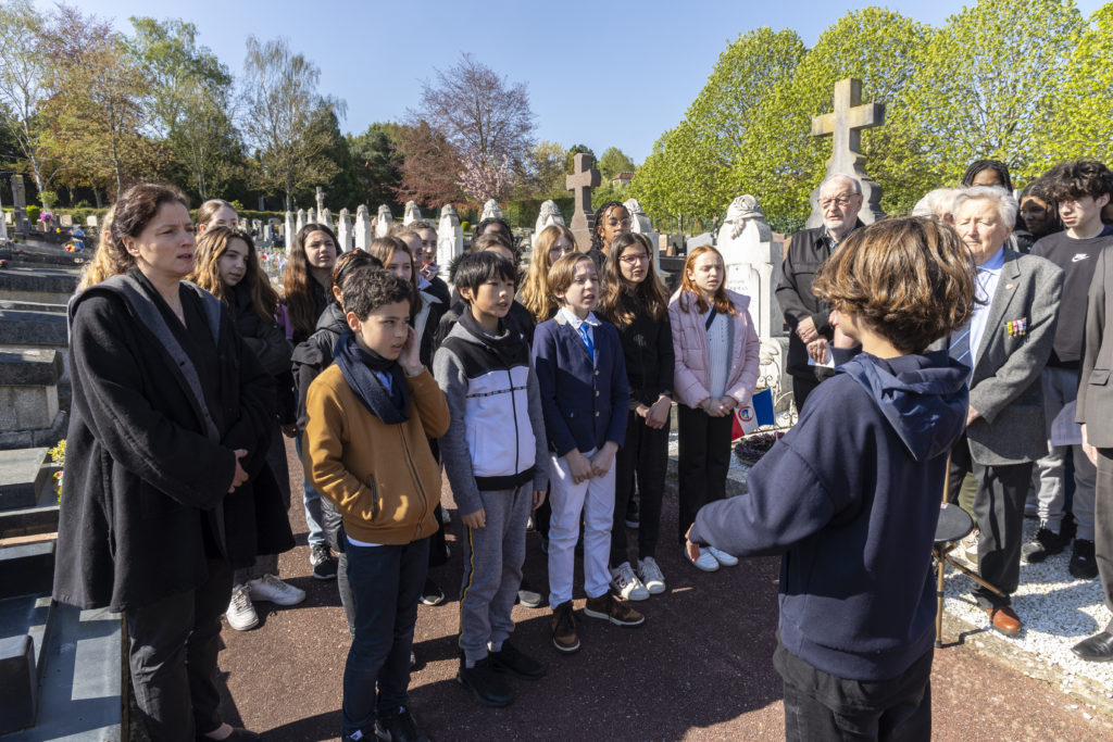 Le 20 avril 2023, inauguration du Projet GéoMémoire au cimetière de Chambourcy dans les Yvelines, en présence d’élèves et des autorités.