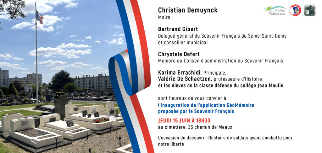 Le 15 juin 2023, cérémonie d’inauguration du Projet GéoMémoire au cimetière de Neuilly-Plaisance en Seine-Saint-Denis.