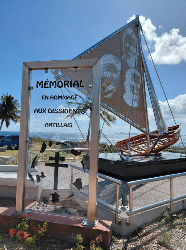Entre 2 000 et 3 000 jeunes antillais, guadeloupéens et martiniquais, choisissent d’aller rejoindre les FFL après l’appel du Général de Gaulle le 18 juin 1940, pour défendre l’idéal d’une certaine France. Les Guadeloupéens partent vers la Dominique et Antigua, possessions britanniques. Cependant, tous ceux, jeunes et moins jeunes, qui sont arrivés dans l’île anglaise, n’ont pas été forcément engagés et beaucoup ont connu des fortunes diverses. Cette période est synonyme de répression et de violence marquée par une surveillance étroite de la population : les grèves sont réprimées et les instigateurs sont emprisonnés. Les restrictions économiques dues au blocus des Alliés dans les Caraïbes rendent obligatoires l’obtention de bons de rationnement pour pouvoir s’approvisionner. La majorité des dissidents étaient issus de milieux modestes. Ils partent de nuit ou au lever du jour sur de frêles embarcations, les « canots » qui appartiennent aux passeurs qui sont marins pêcheurs. Certains dissidents n’hésitent pas à voler des embarcations comme le saintois Massena Desbonnes. C’est à partir des côtes de Bananier jusqu’à Trois Rivières, proches de l’île de la Dominique, que commence l’aventure. Les trajets maritimes nocturnes étaient périlleux avec les risques de naufrages dans le canal des Saintes, courant extrêmement dangereux. De plus, ils pouvaient être aussi interceptés par les marins du croiseur Jeanne d’Arc qui était aux ordres du gouverneur Sorin, et enfermés avec leurs passeurs au fort Napoléon aux Saintes. Arrivés en Dominique, ils sont pris en charge à Roseau, la capitale, par les services de Jean Massip, nom de guerre du colonel Perrel. Ils reçoivent une rapide formation militaire, signent leur engagement puis sont dirigés vers les États-Unis, plus précisément au Fort Dix durant une année, dans le New Jersey, via Porto Rico et Guantanamo à Cuba. Ils sont intégrés au 21ème groupe antillais de DCA (défense contre avions), ex-bataillon de Marche des Antilles n°1. Ils vont débarquer à Casablanca. La marche triomphale commence. Afrique du nord, Italie, Provence, Alsace-Lorraine et enfin l’Allemagne. Des dizaines de morts au Champ d’Honneur, autant de disparus, des centaines de blessés. Tel est leur tribut à la Mère Patrie. Le mémorial de la dissidence est un monument érigé en 2024-2025 face à la Dominique, à la mémoire de ceux qui furent oubliés pendant des décennies. Il est implanté à la section de Bord de Mer à Trois Rivières, lieu d’où sont partis de nombreux Dissidents. Il comprend deux éléments essentiels : la Croix de Lorraine, proposée au Général de Gaulle comme emblème de la Résistance le 1er juillet 1940, ainsi que le canot de type saintois dont les voiles sont réalisées en inox perforé avec en filigrane des visages de soldats. Juste à côté, une plaque en marbre sur laquelle sont gravés les noms des collectivités qui sont à l’initiative du projet. En 2009, alors qu’il décorait 15 résistants antillais devant le monument aux morts de Fort-de-France, le Président de la République fit cette déclaration : « La Dissidence est digne d’appartenir à la légende sacrée de la Seconde Guerre mondiale ».