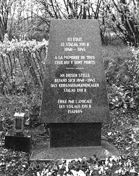14 – Stalag XI-B, Fallingbostel (Allemagne) : en 1990, l’Amicale du camp fait ériger une stèle « à la mémoire des 132 prisonniers de guerre français décédés au Stalag XI-B 1940-1945 », dans le cimetière de Fallingbostel.
