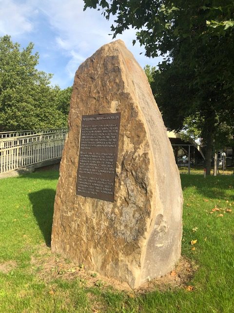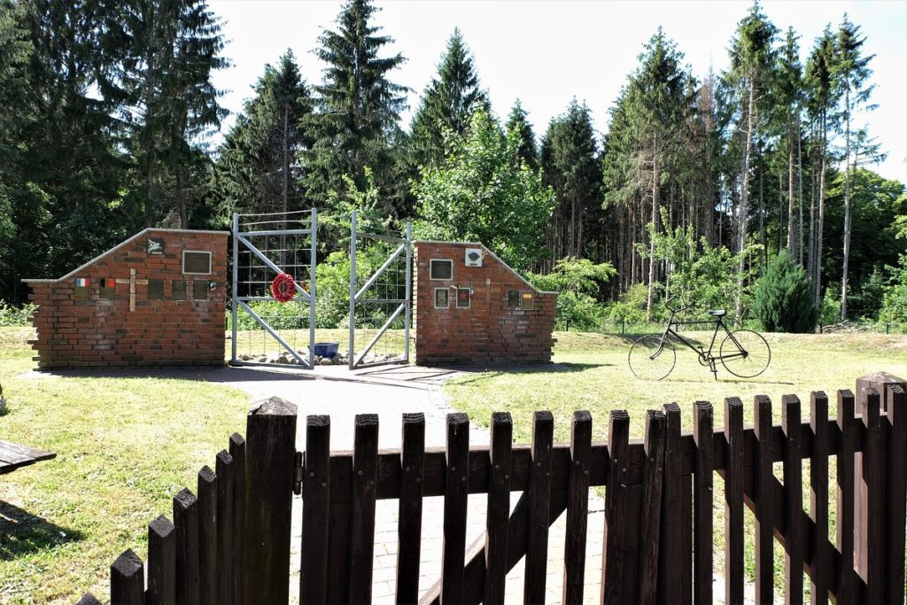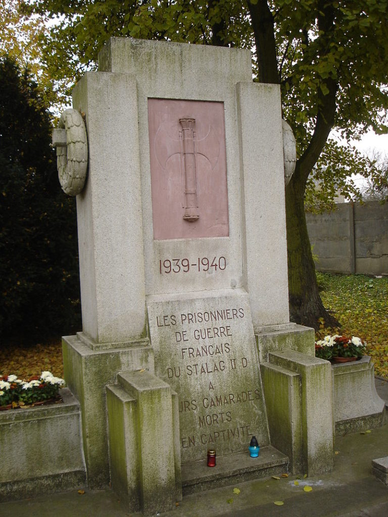 25 – Stalag III-B Fürstenberg, aujourd’hui Eisenhüttenstadt, (Allemagne) : Des blocs de granit ont été érigés en souvenir du Stalag III-B, sur lesquels sont apposées de nombreuses plaques sur le camp, plusieurs d’entre elles mentionnent les prisonniers français : «Le Stalag III-B était conçu pour accueillir jusqu’à 10 000 prisonniers de guerre. À cette fin, quarante baraques ont été construites le long d’une route centrale. Pendant la guerre, environ 100 000 prisonniers sont passés par le Stalag III-B. Ils venaient de Pologne, de France, de Belgique, des Pays-Bas, de Yougoslavie, d’Union Soviétique, des États-Unis et d’Italie… ».