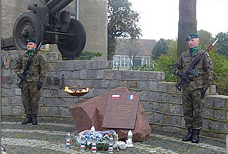 15 – Camp de Graudenz (Pologne) : en 1992, l’Amicale du camp et les autorités polonaises font apposer une plaque bilingue en hommage aux prisonniers de guerre français.