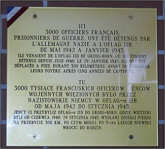 22-2 – Oflag II-B, Choszczno (Pologne) : en 2005, l’Amicale du camp a fait ériger un monument avec une plaque bilingue en hommage aux morts du camp. Une autre plaque apposée sur un mur rend hommage aux 3 000 officiers français internés là-bas.