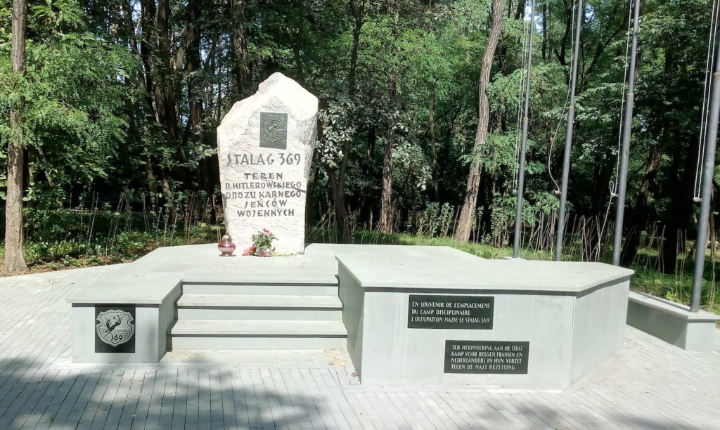 4 – Stalag 369, Kobiercyn (Pologne) : les autorités polonaises érigent en 1956 une stèle commémorative sur le site de l’ancien camp.