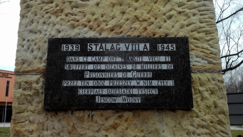 7 – Stalag VIII-A, Zgorzelec (Pologne) : l’Amicale du camp fait construire une stèle en 1976 dont l’inscription porte sur les souffrances des prisonniers.
