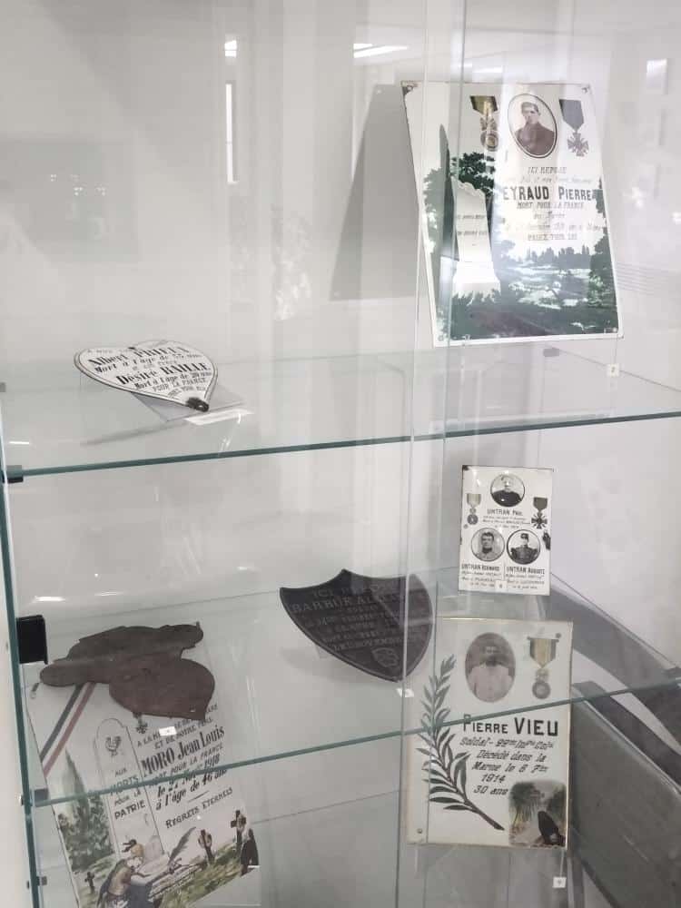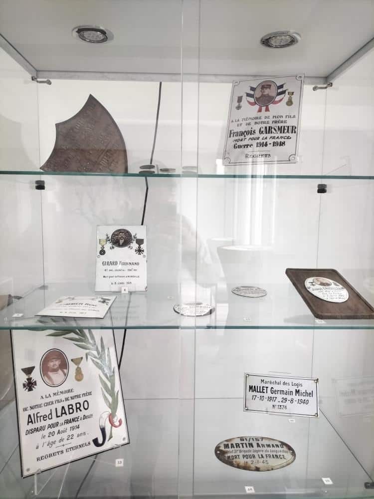 Vitrine présentant les plaques restituées.