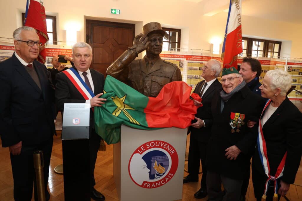 Le buste a été dévoilé le 2 février 2026 en présence notamment d’un ancien combattant de la poche de Colmar. © Hervé Kielwasser
