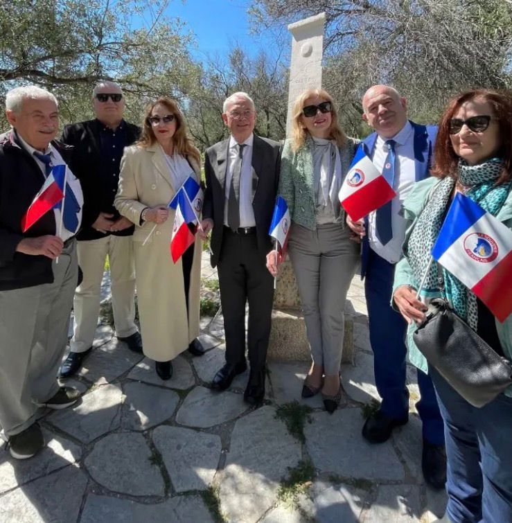 Le dépôt de gerbe proposé par le Délégué Général du Souvenir Français pour la Grèce, Antonio Gkortsilas, s’est déroulé en présence d’une petite délégation d’adhérents du Souvenir Français en Grèce ainsi que d’une classe de troisième d’un collège de Chevaigné (agglomération de Rennes).