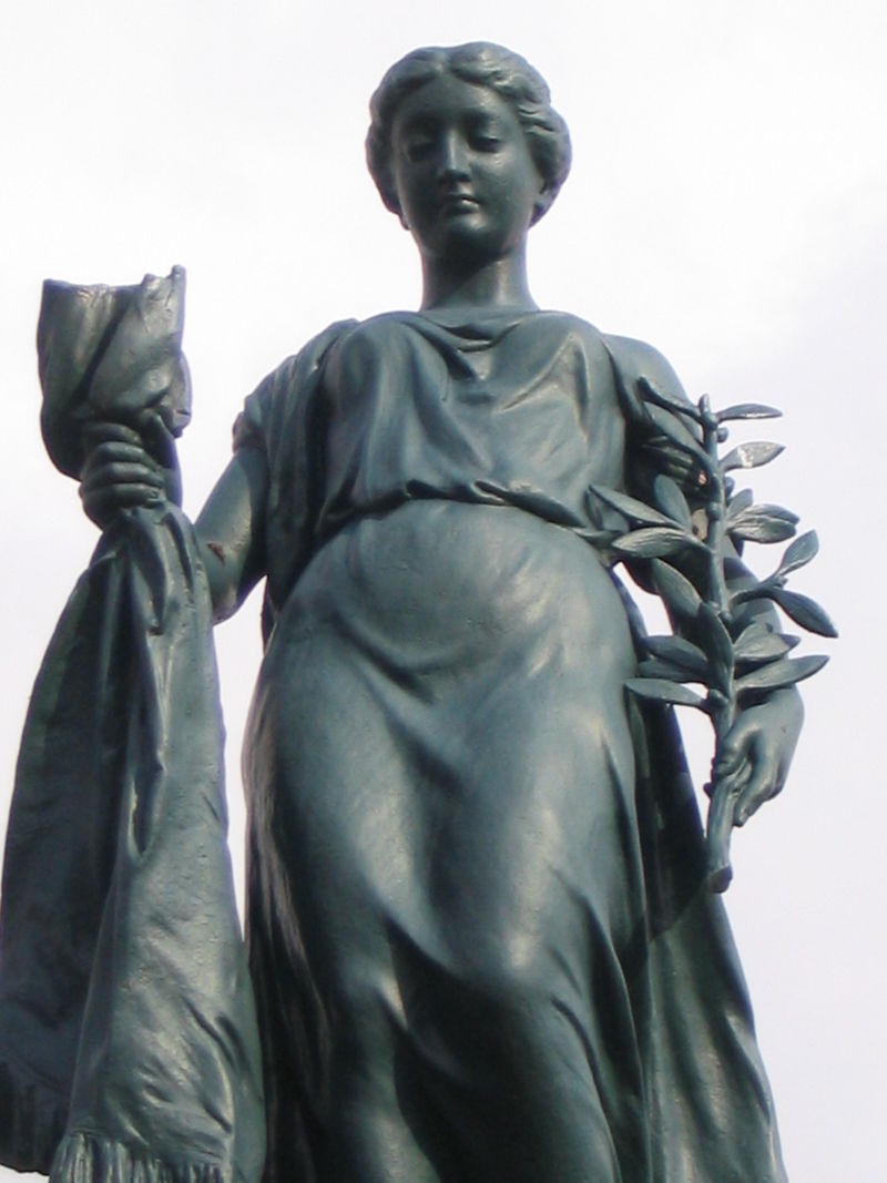 Au sommet du monument, on retrouve la statue « Pro Patria » de Millet de Marcilly, une statue de femme, allégorie de la victoire, avec drapeau et rameau d’olivier, symbole de paix. À ses pieds sont jetées des armes de guerre : canon, hache, fusil… La hampe du drapeau a aujourd’hui disparu (cf. photo).