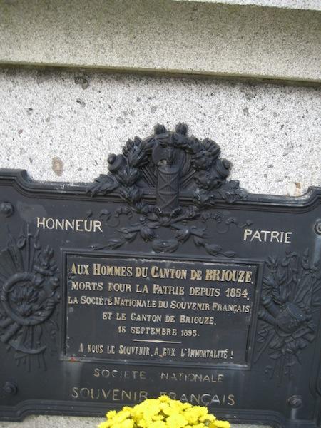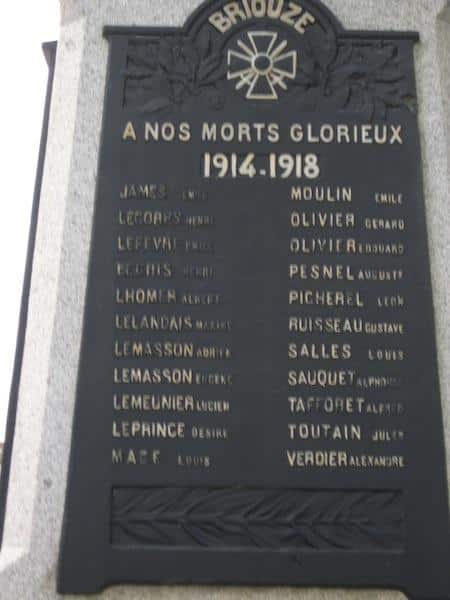 En 1920, une plaque recensant les noms des Briouzais « Morts pour la France » lors de la Première Guerre mondiale a été apposée sur le fût.