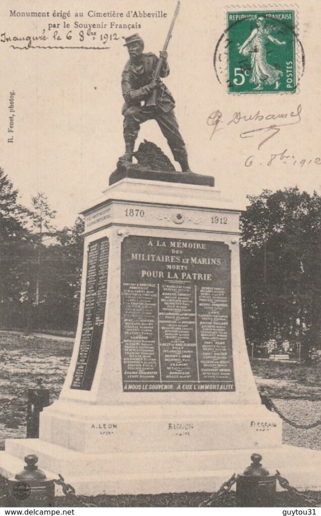 Ce monument a été conçu par l’architecte Léon Azéma, réalisé par la marbrerie Fiérain — entreprise familiale fondée en 1899 – et inauguré sous le mandat du maire Charles Bignon (1896-1923). Il constitue un témoignage précieux de l’impact du conflit franco-prussien sur le territoire de la Somme, et demeure un lieu de transmission de l’histoire locale et nationale.